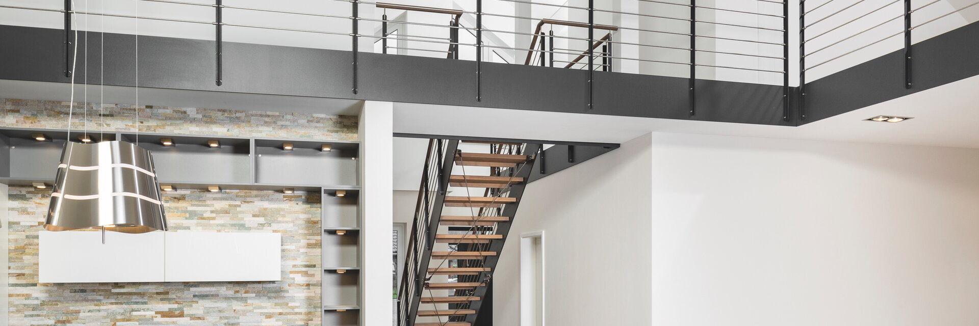 Unsere individuell gestalteten Deckenverkleidungen machen eine schöne Treppe erst komplett. Rohdeckenanteile werden durch dekorative Elemente einer Holzverkleidung ersetzt, die zugleich jedem Brüstungsgeländer ein optisch ansprechendes Fundament verleihen. Unterseitig angebrachte Abschlussleisten runden das Gesamtbild ab.