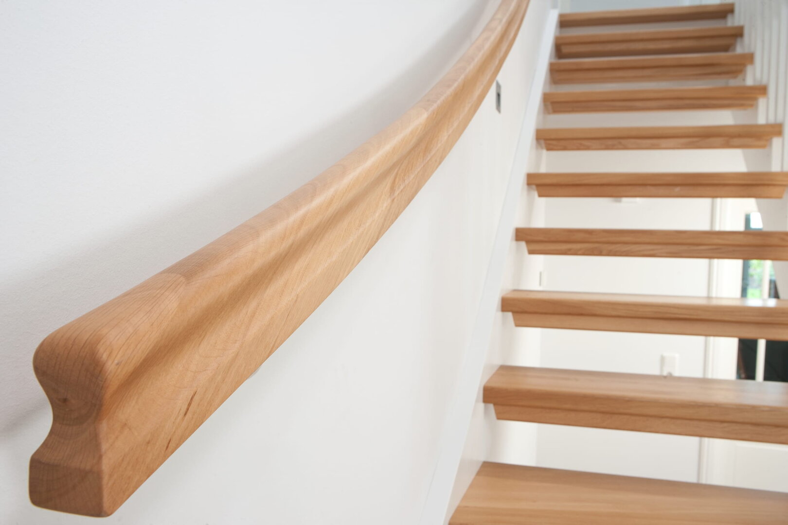 Der Handlauf sollte nach Möglichkeit genau dem Verlauf der Stufen folgen und jede Wendelung nachvollziehen. Wir empfehlen durchgängige Handläufe mit Krümmlingen, die zwar ein hohes Maß an handwerklicher Perfektion voraussetzen, aber wesentlich zu einer stimmigen und großzügigen Optik der Treppe beitragen. Außerdem gewährleisten durchgängige Handläufe eine höhere Sicherheit während des Treppensteigens. Für zahlreiche Gestaltungsvarianten stehen profilierte und schlichte Handläufe zur Auswahl.