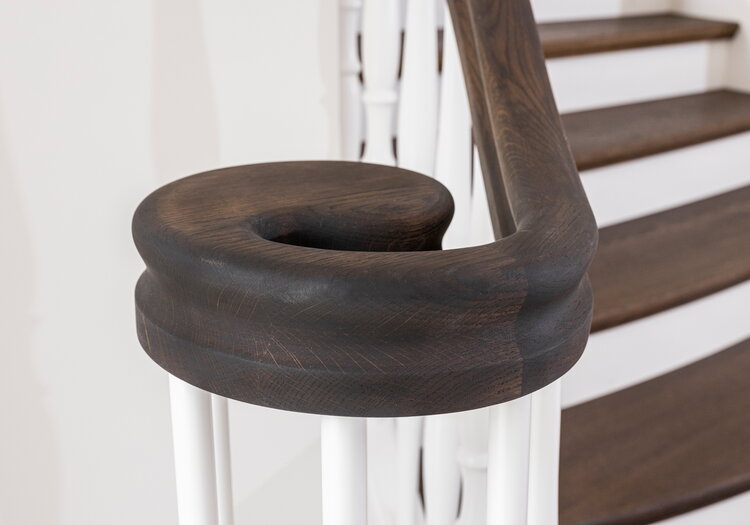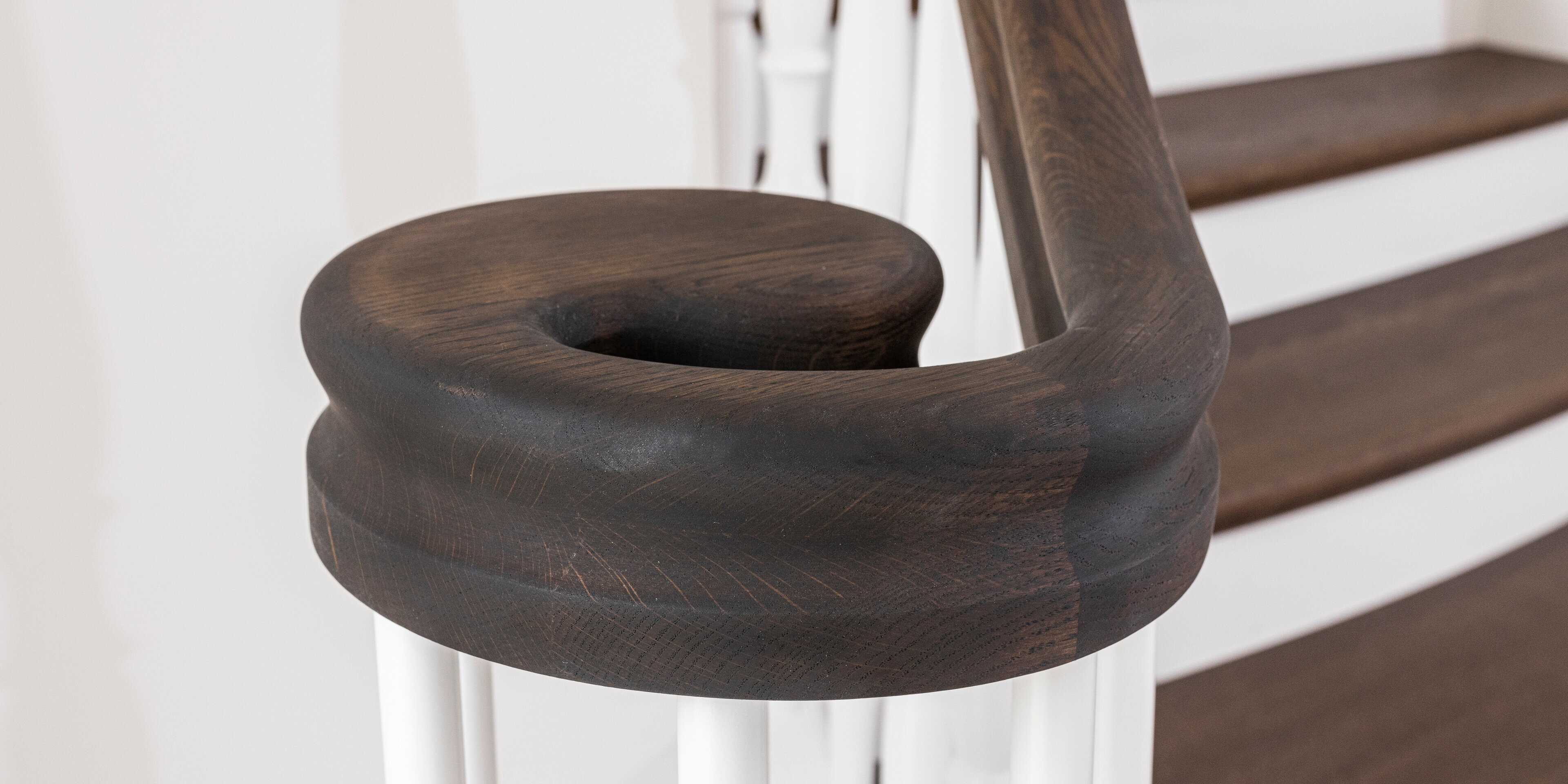 Jede Treppe sollte einladend wirken, bedeutet doch die Überwindung ihrer Stufen immer auch ein wenig Aufwand. Geschwungene, runde Formen des Handlaufs schmeicheln der Hand, besonders wenn es sich um fein ausgearbeitete Schneckenstrukturen handelt. Auch unser Auge nimmt diese besonderen Handarbeiten wohlwollend zur Kenntnis.