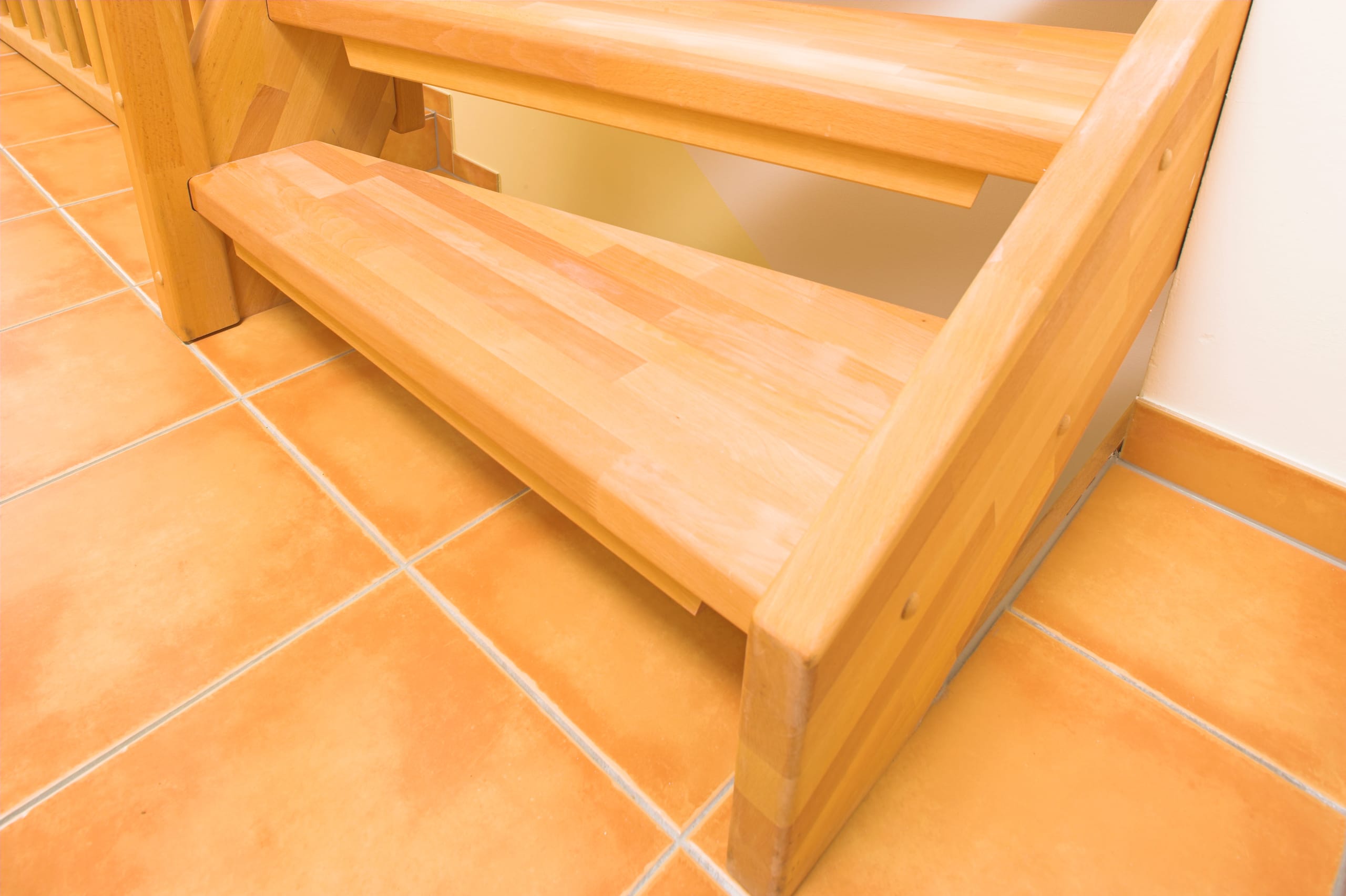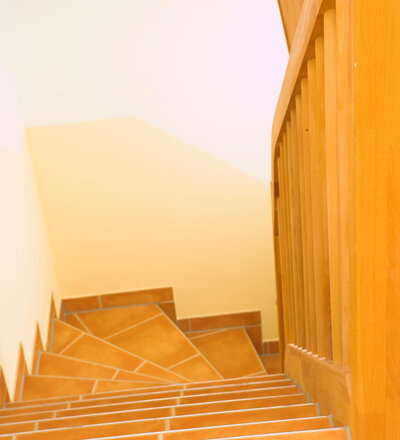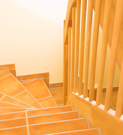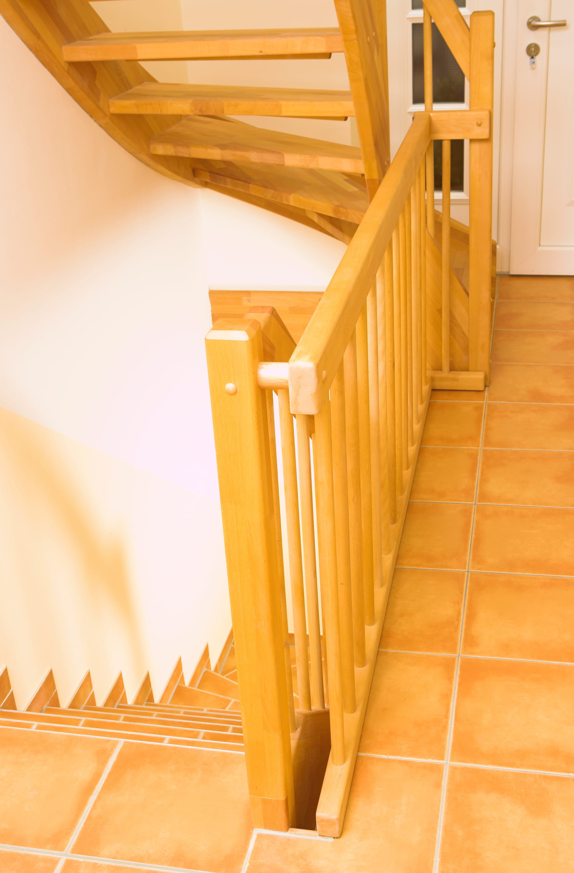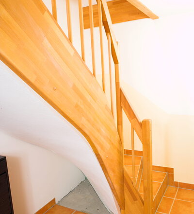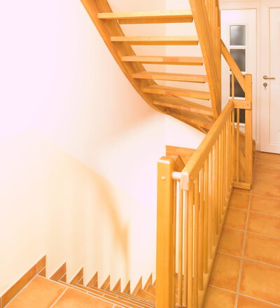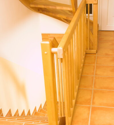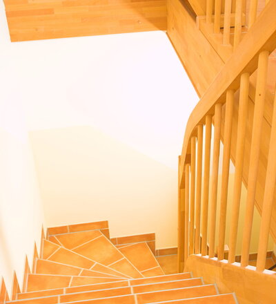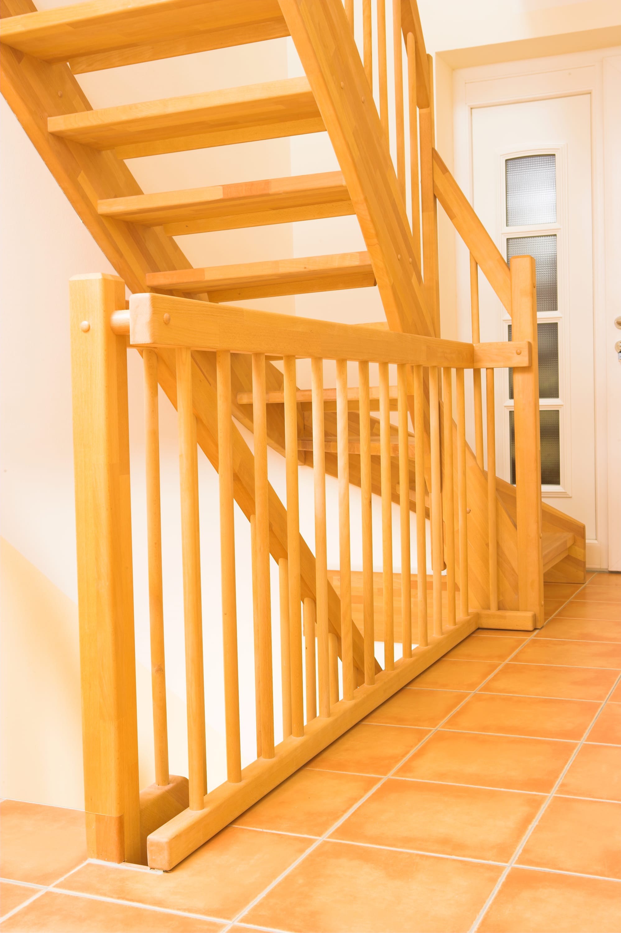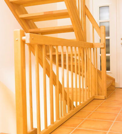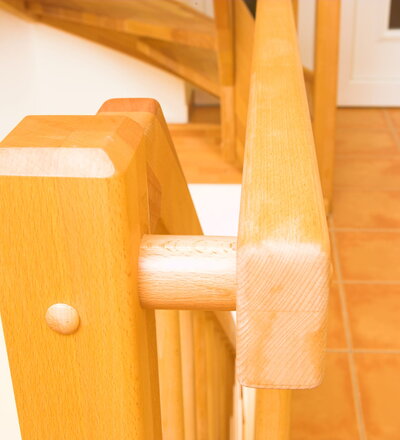 Steigegeländer mit Blindwange; Holzart Buche mosaik