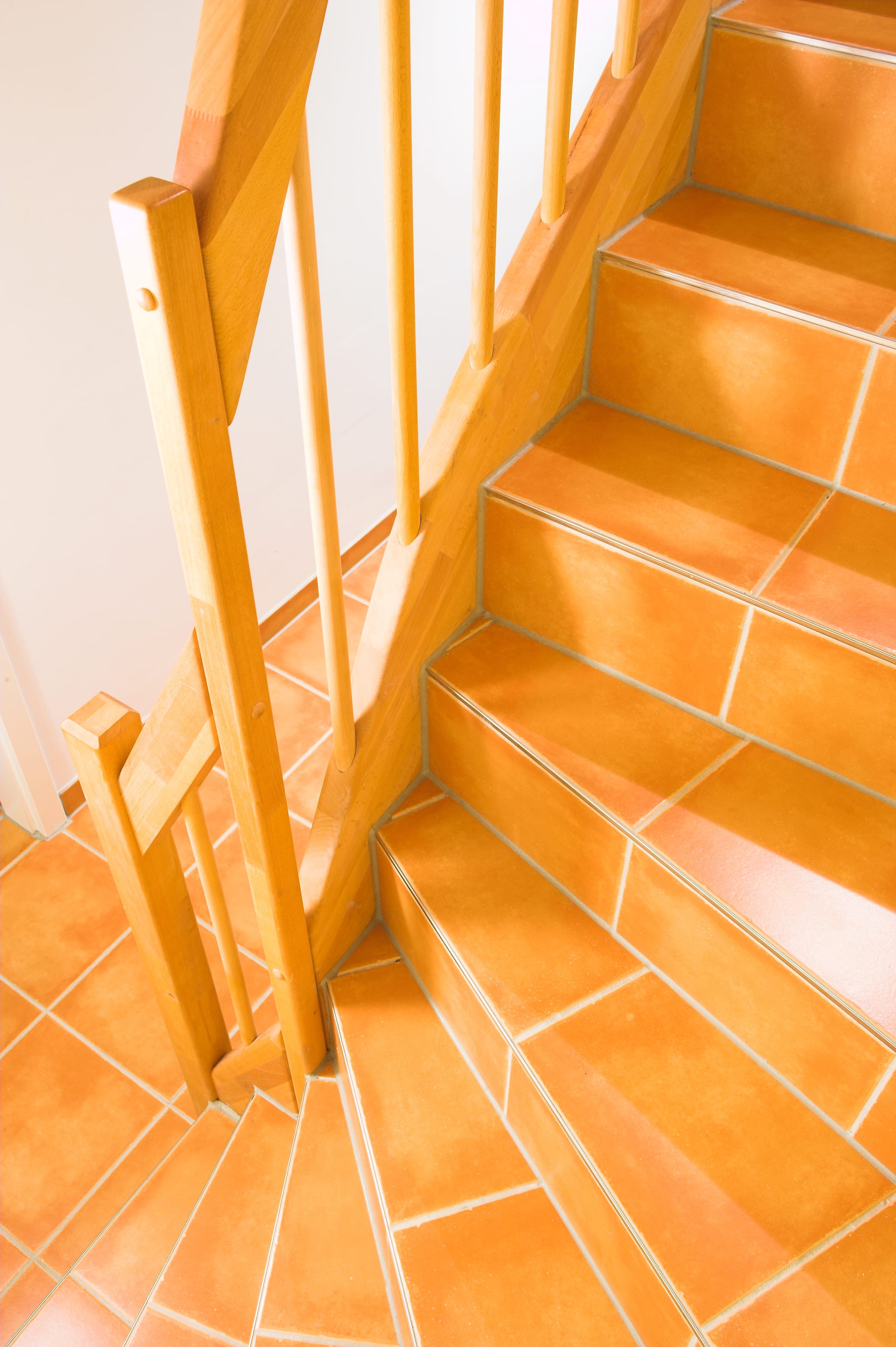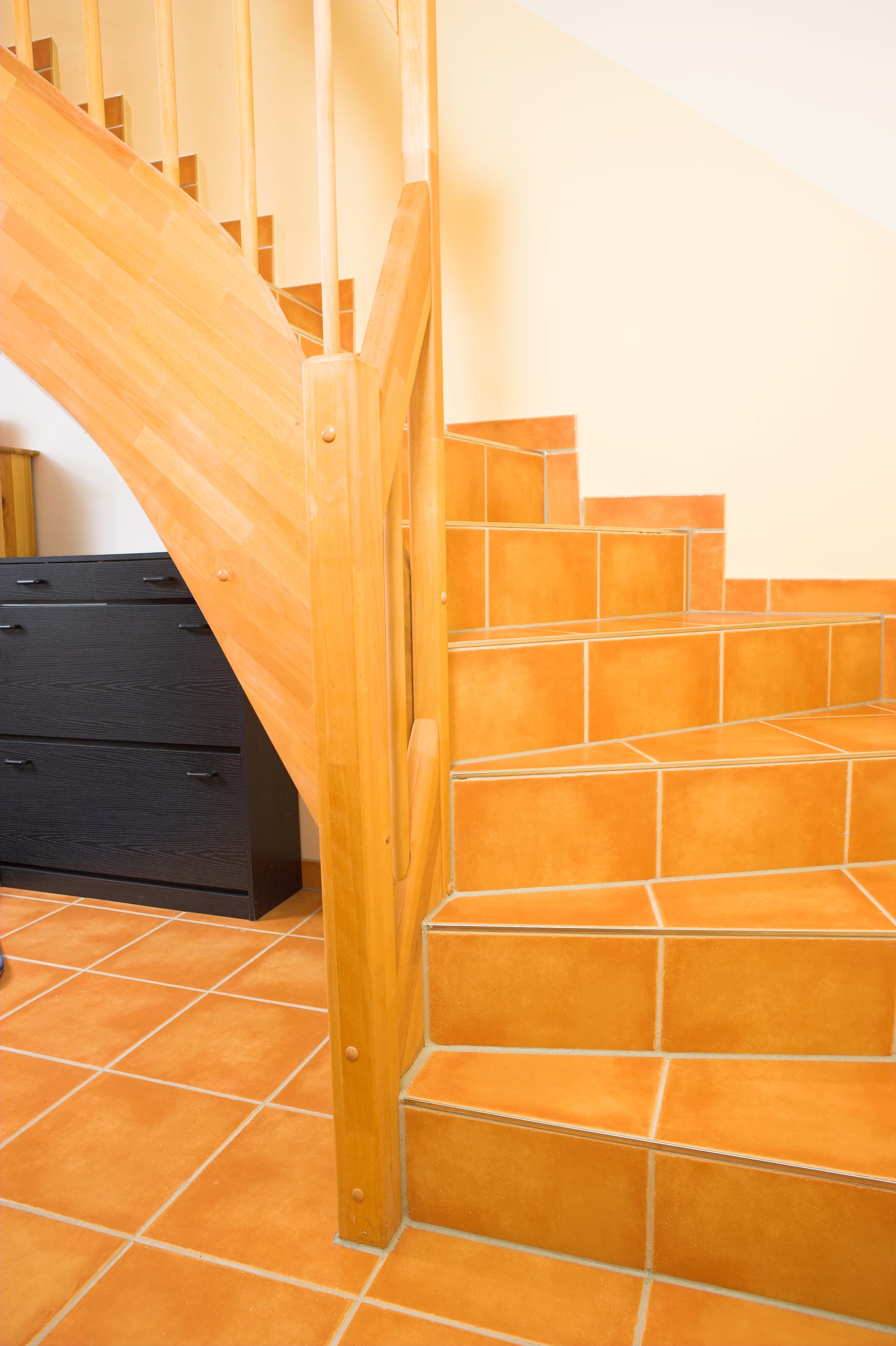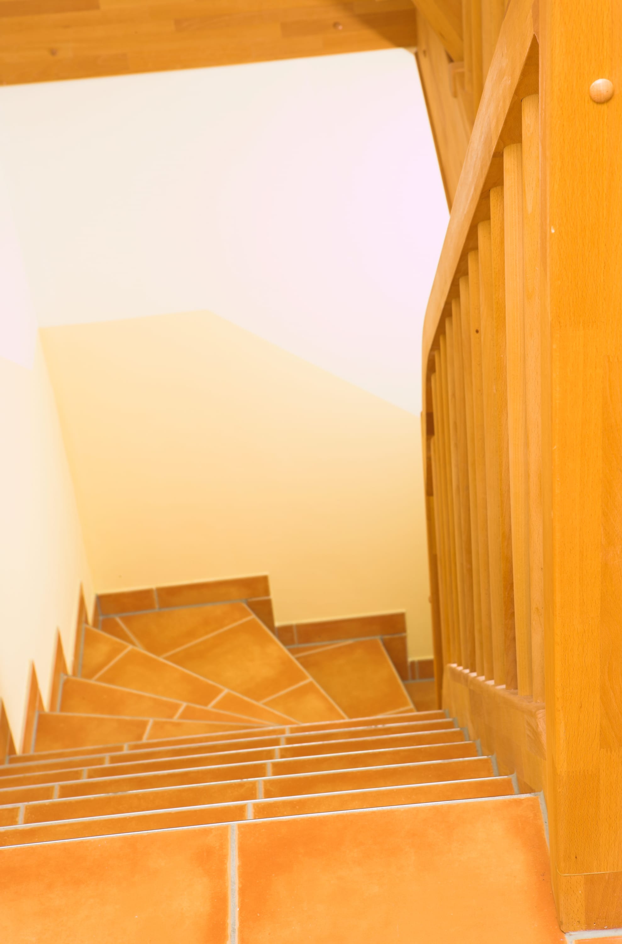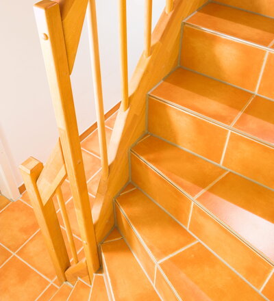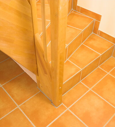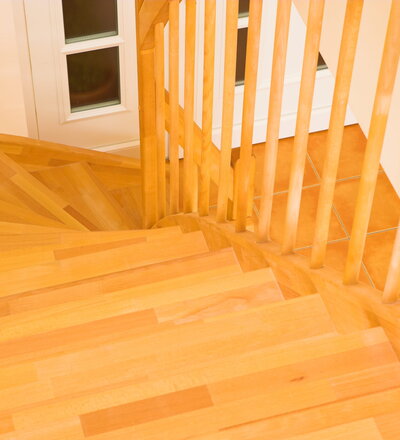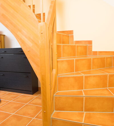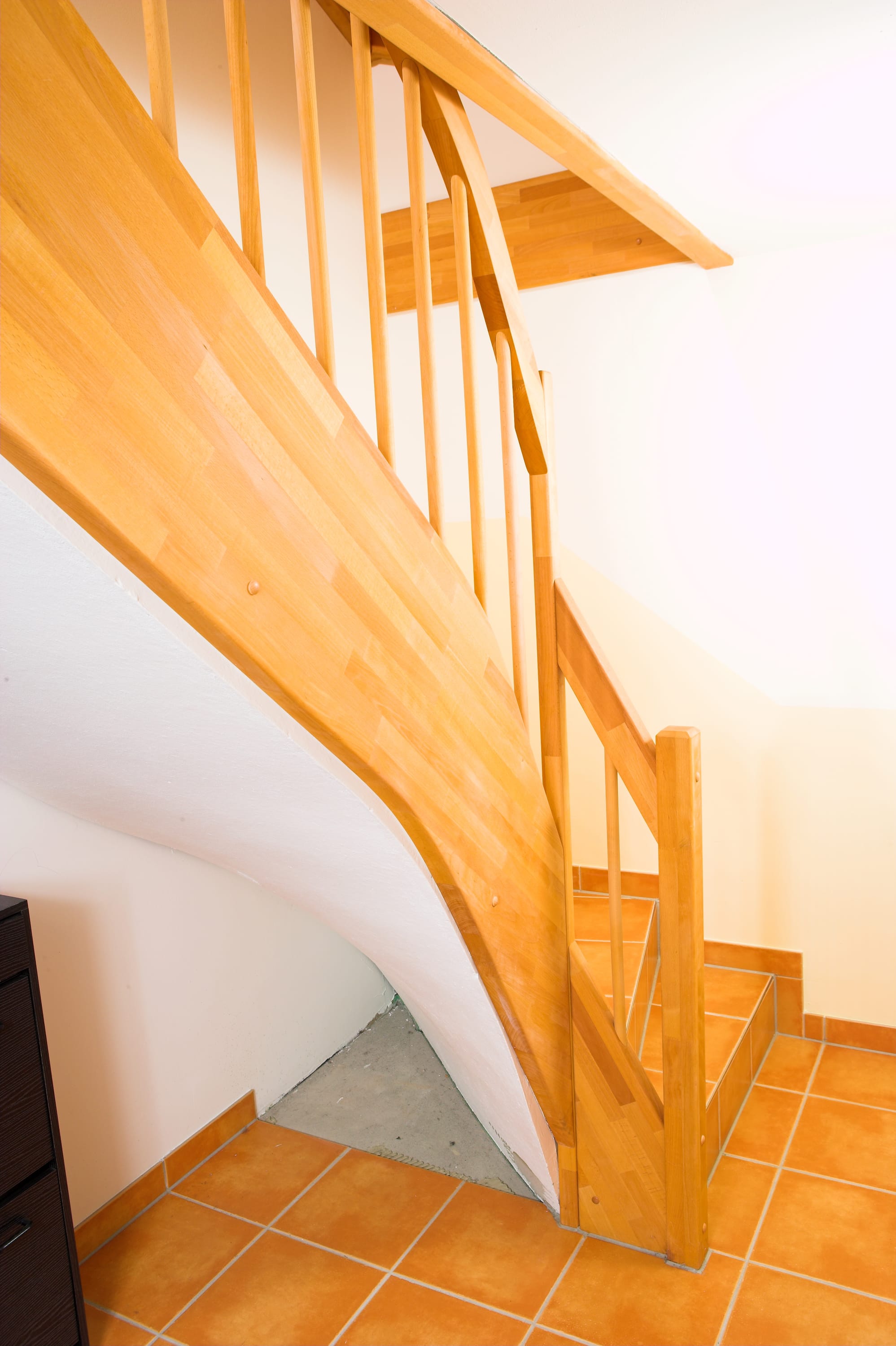 Steigegeländer mit Blindwange; Holzart Buche mosaik