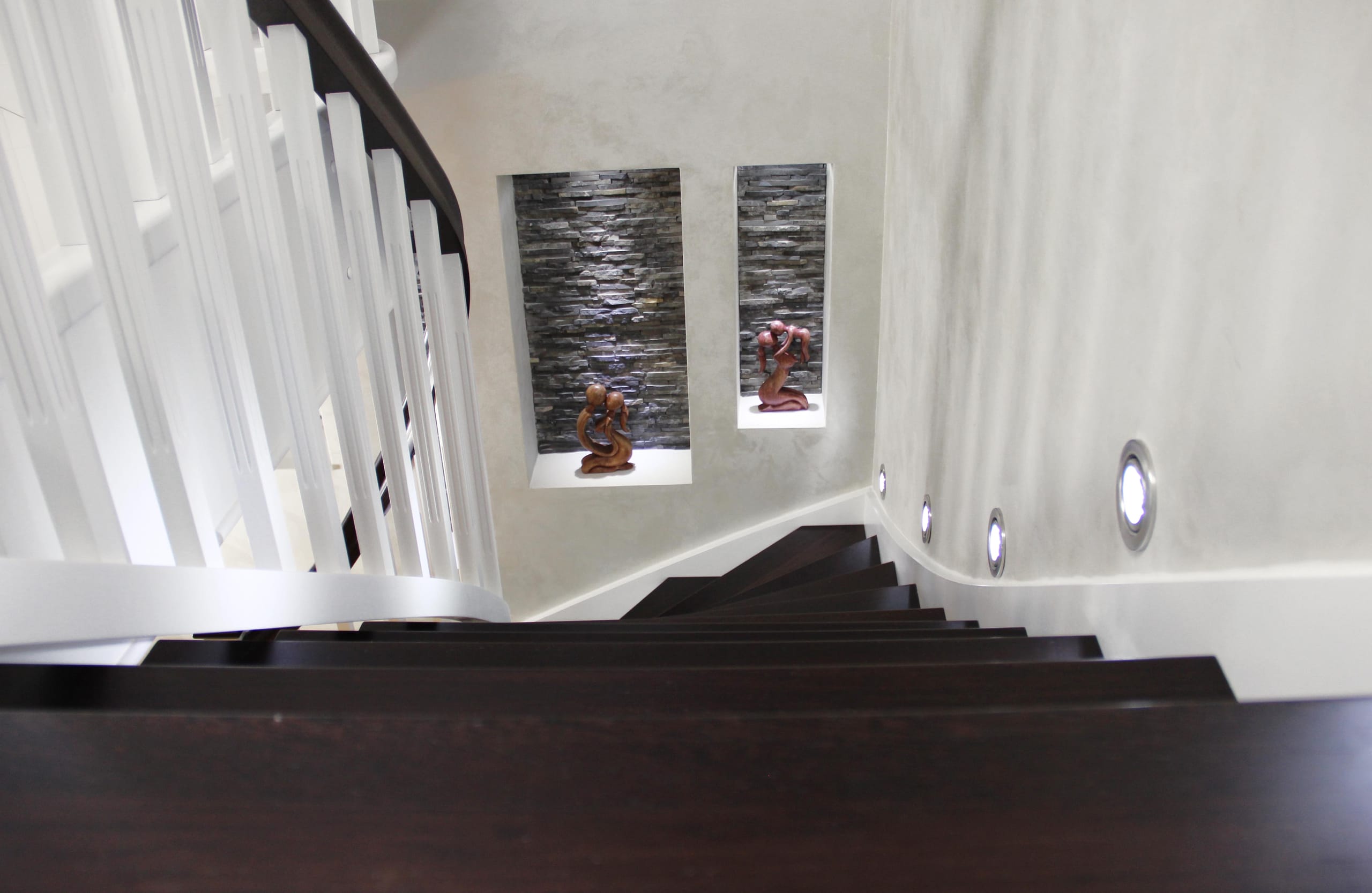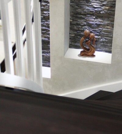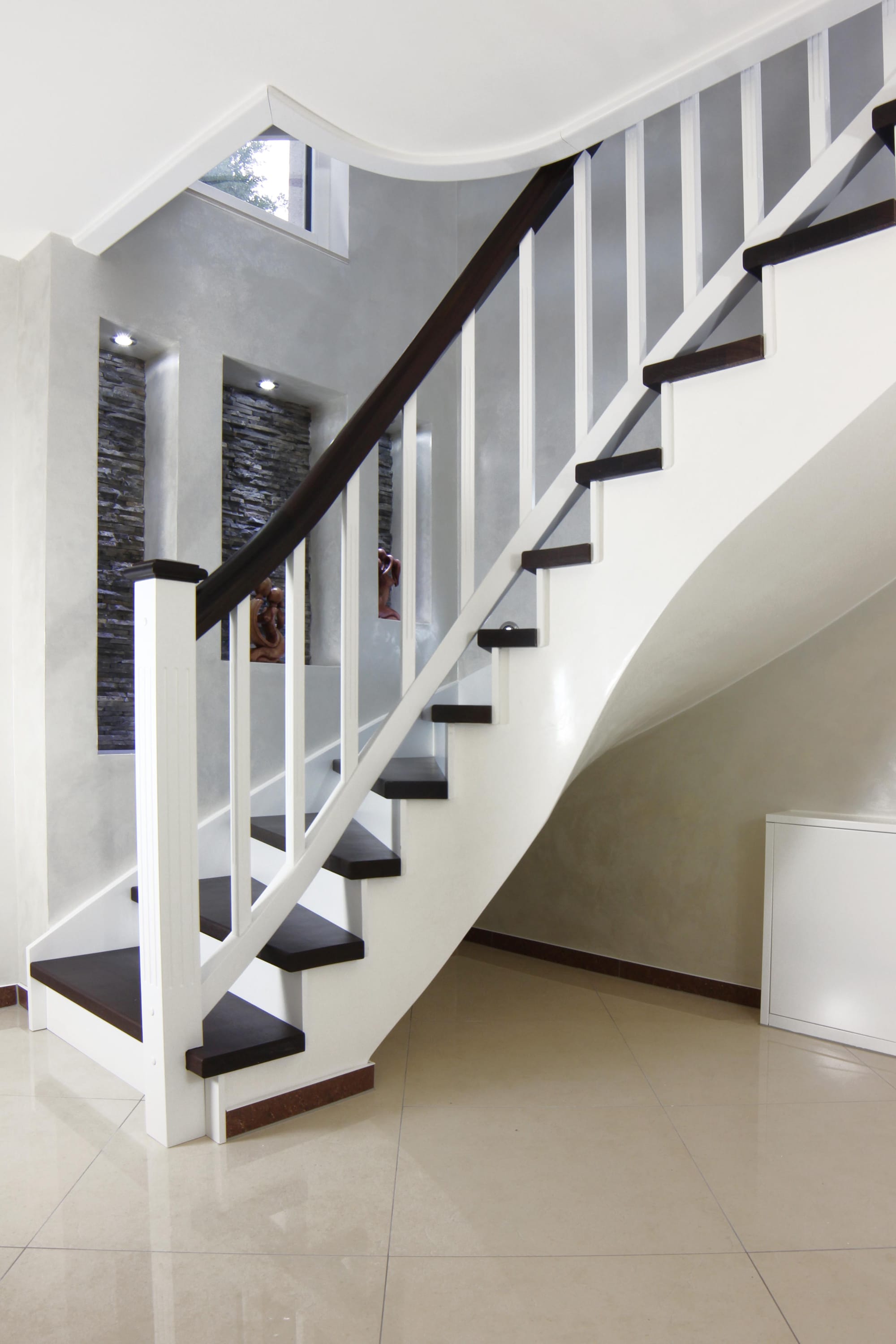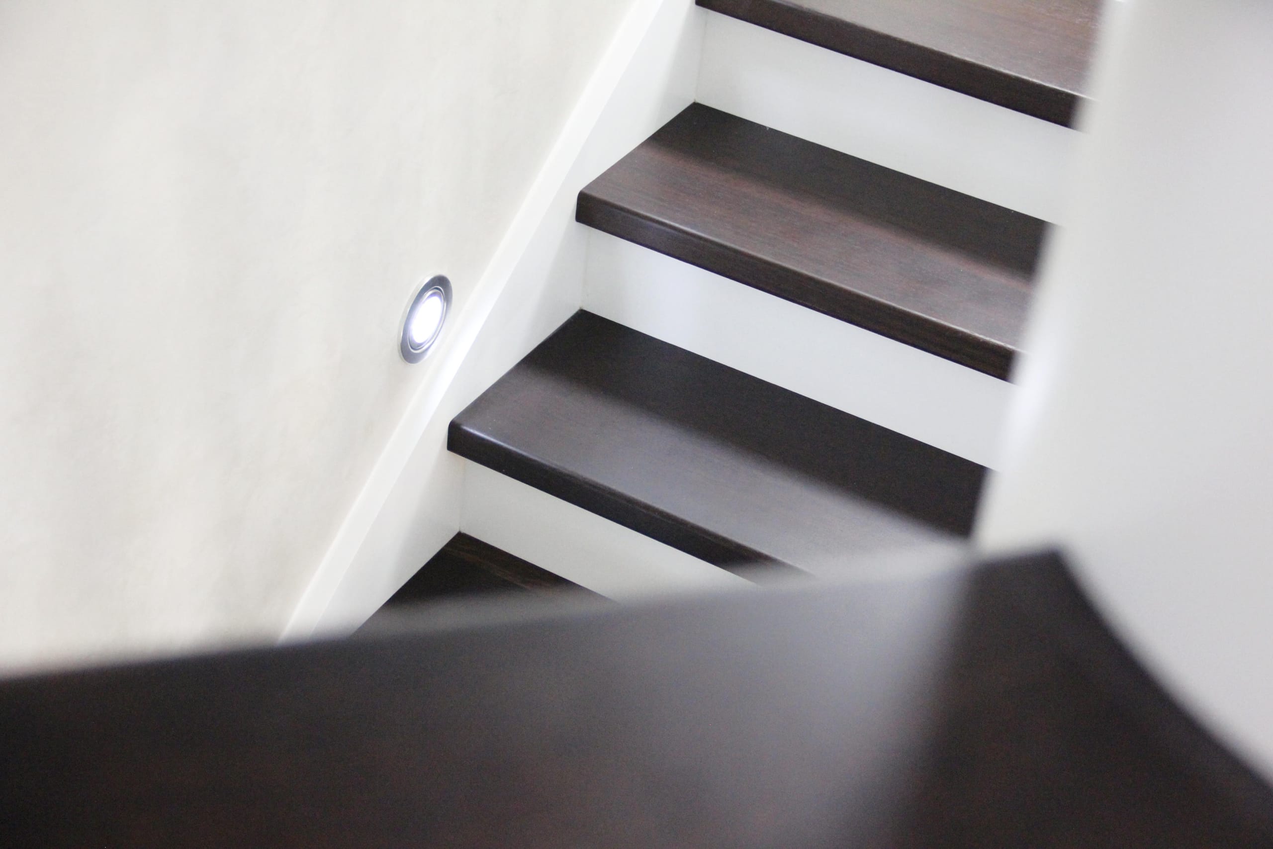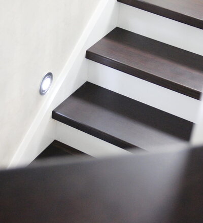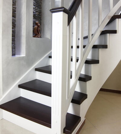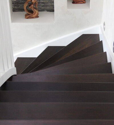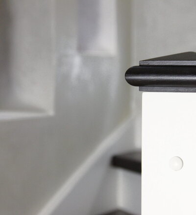 Steigegeländer mit Untergurt für eine Betontreppe, einschließlich Stufenbelegung.