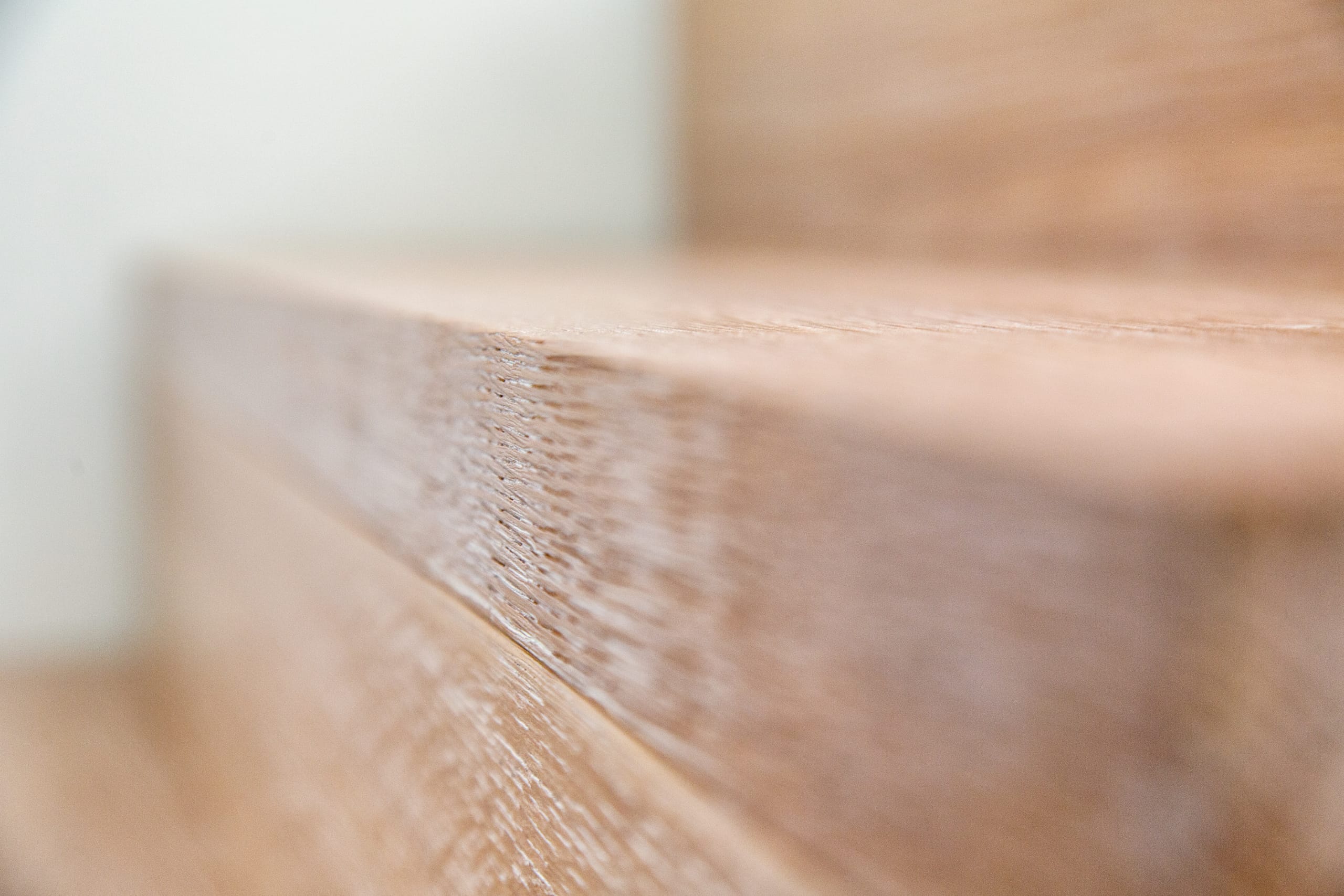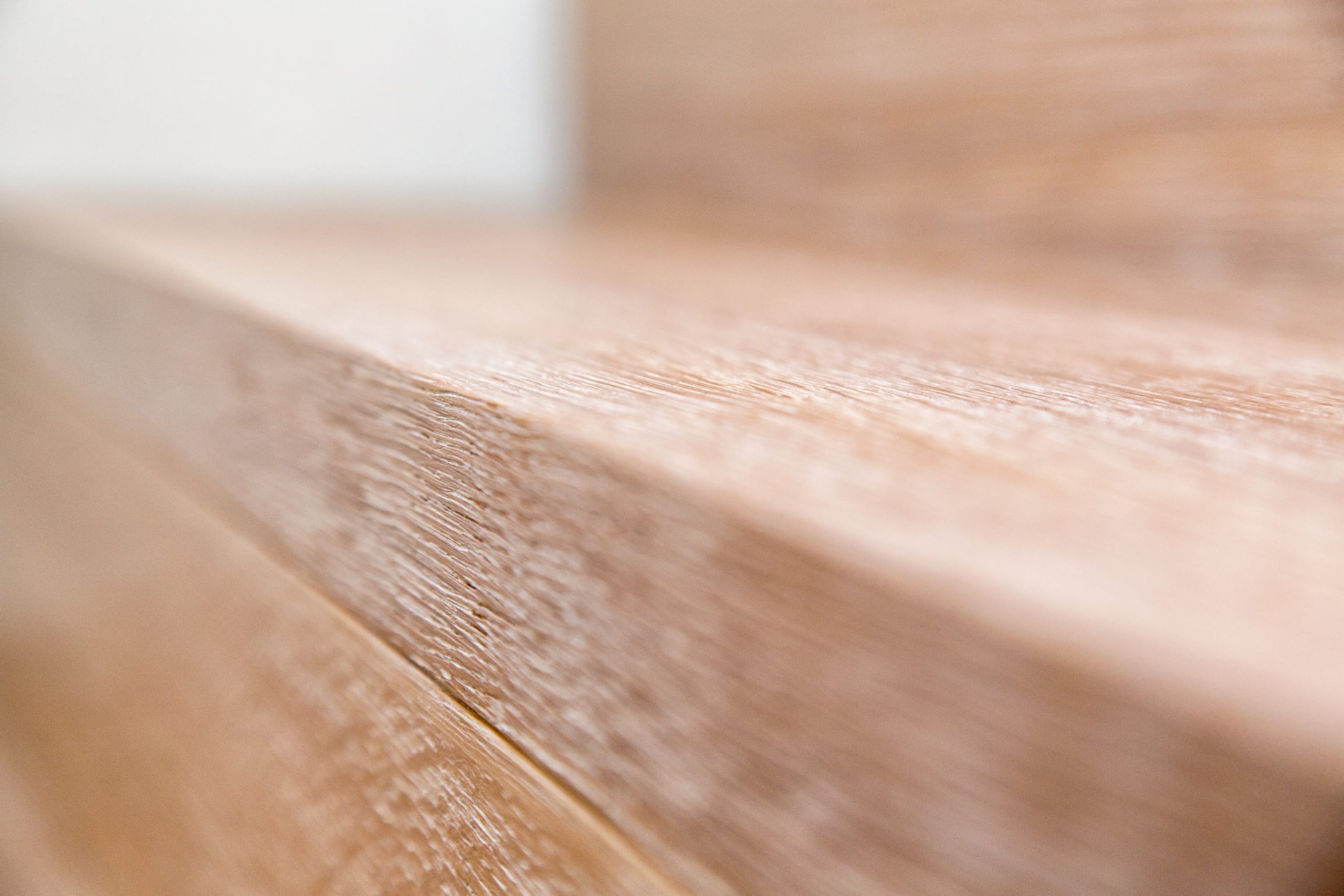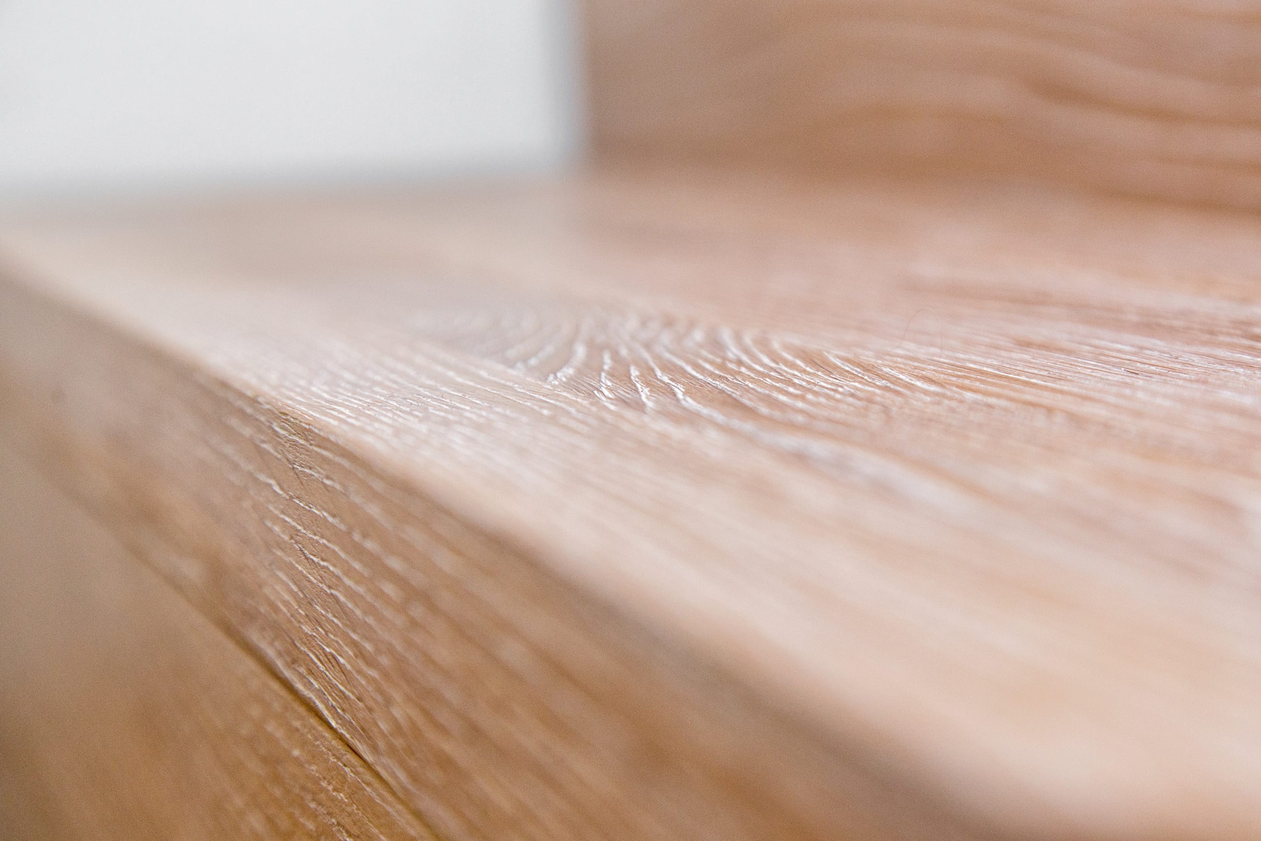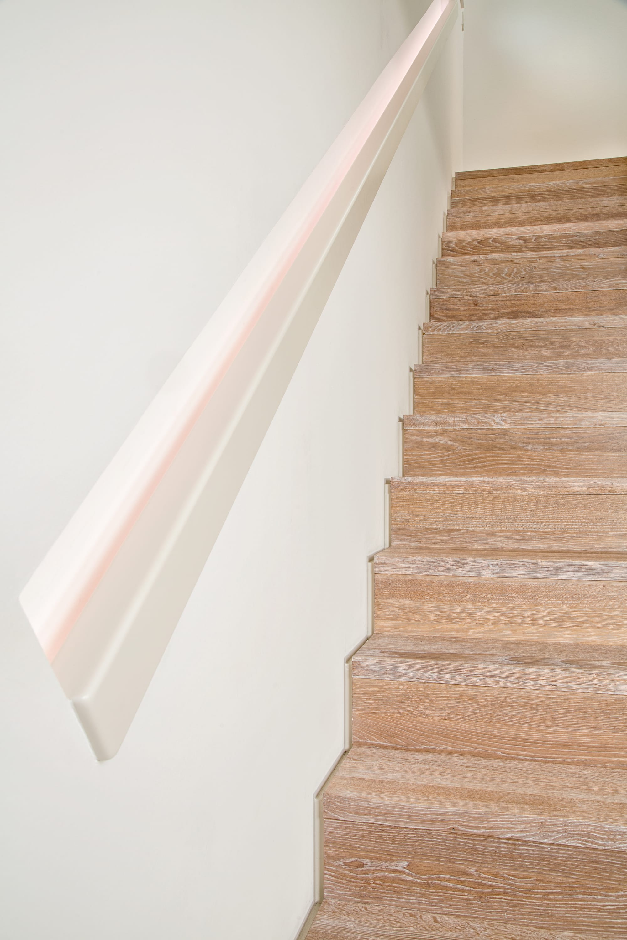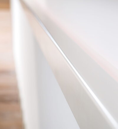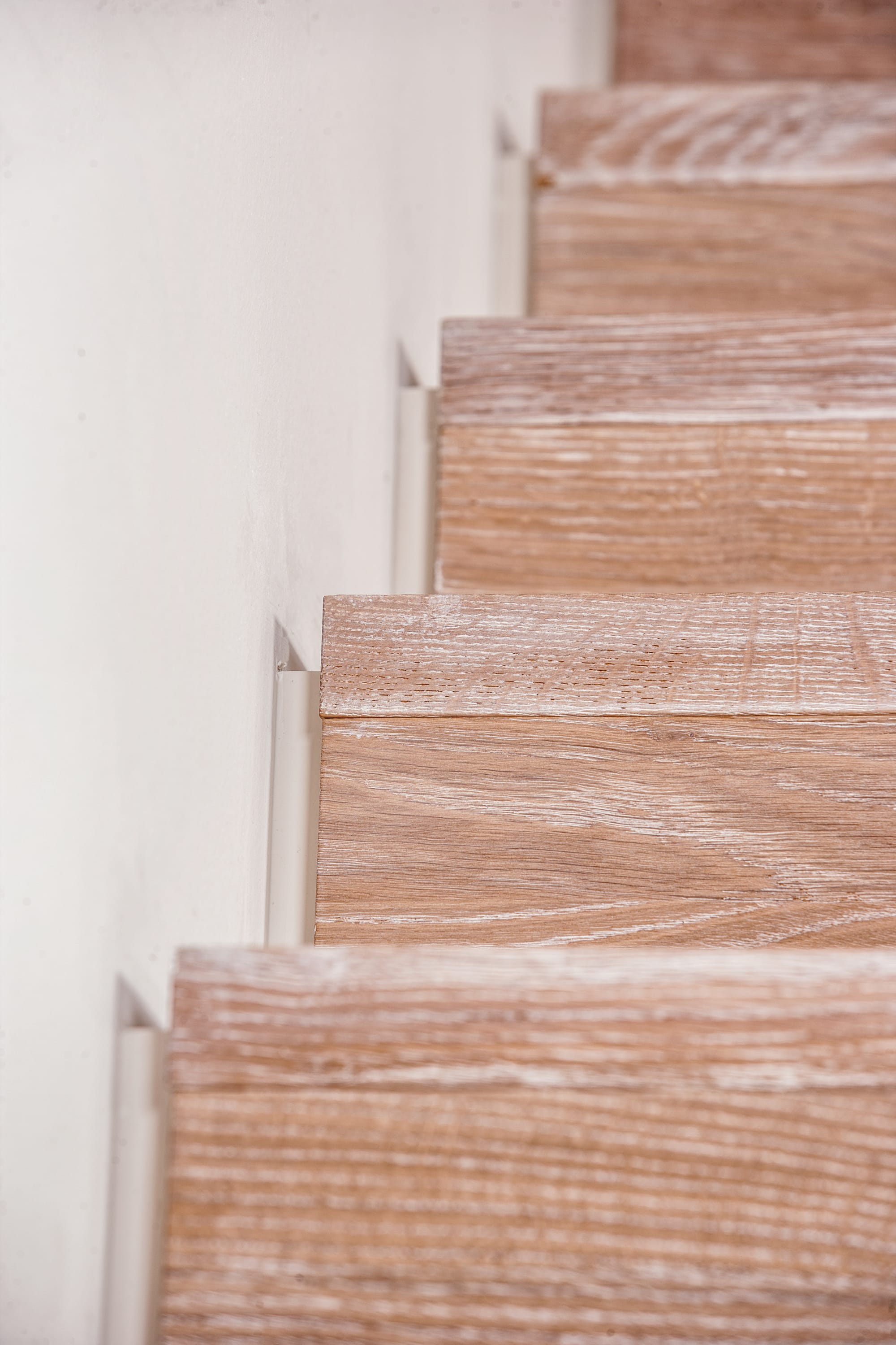 Stufen und Handlauf in der Holzart Akazie mosaik geölt, Wangen verkleidet, eingebautes Regalsystem unter der Treppe