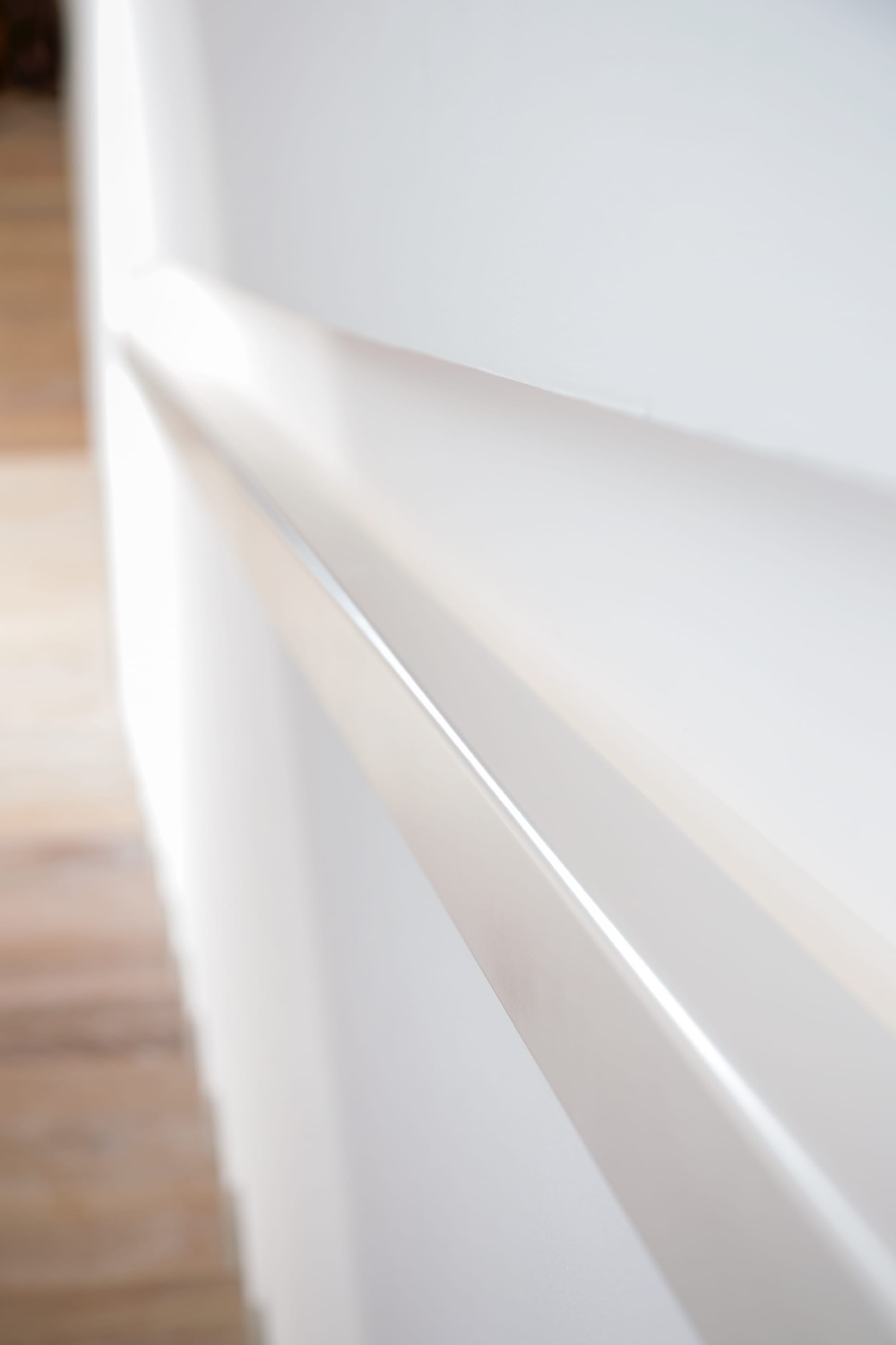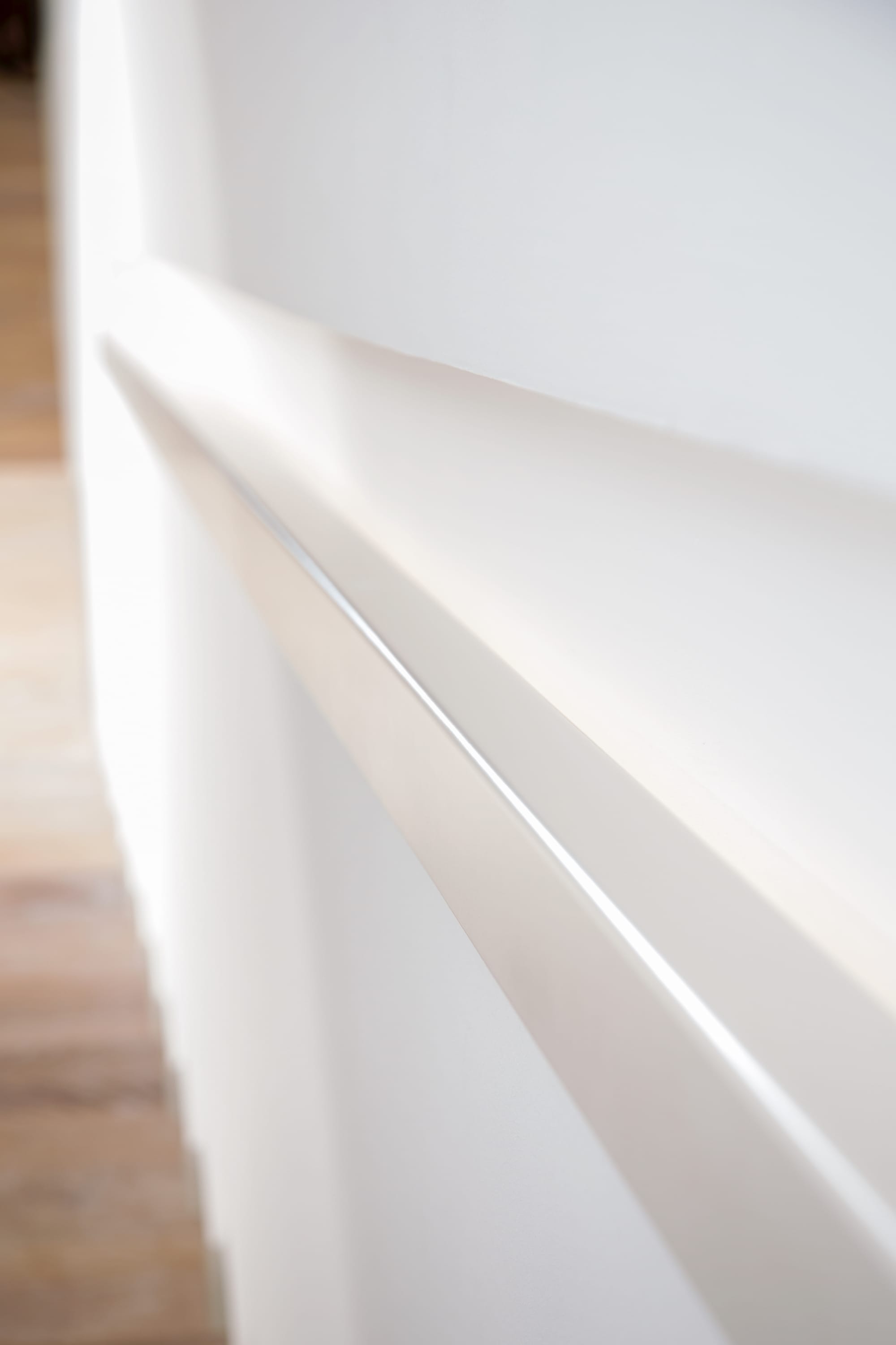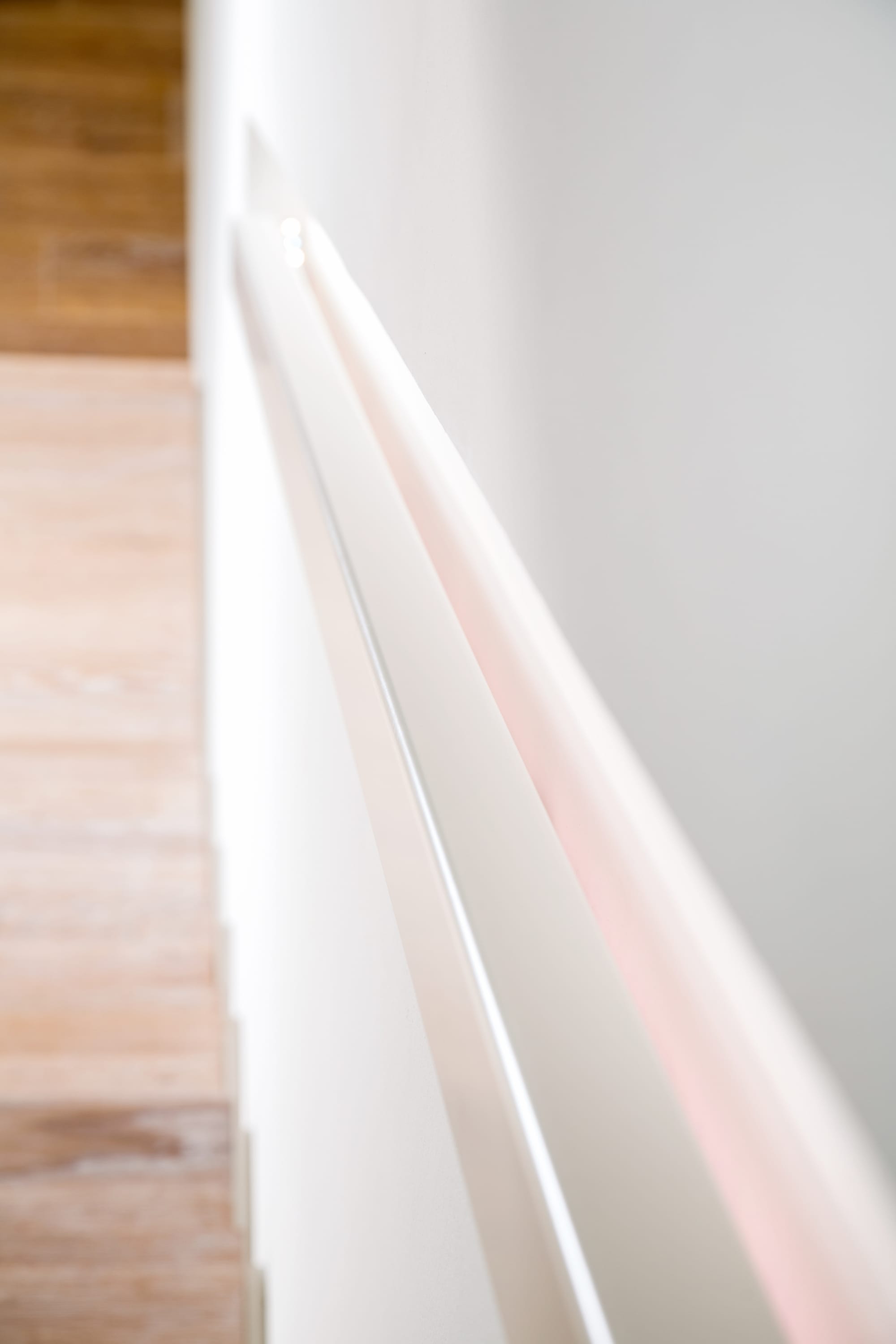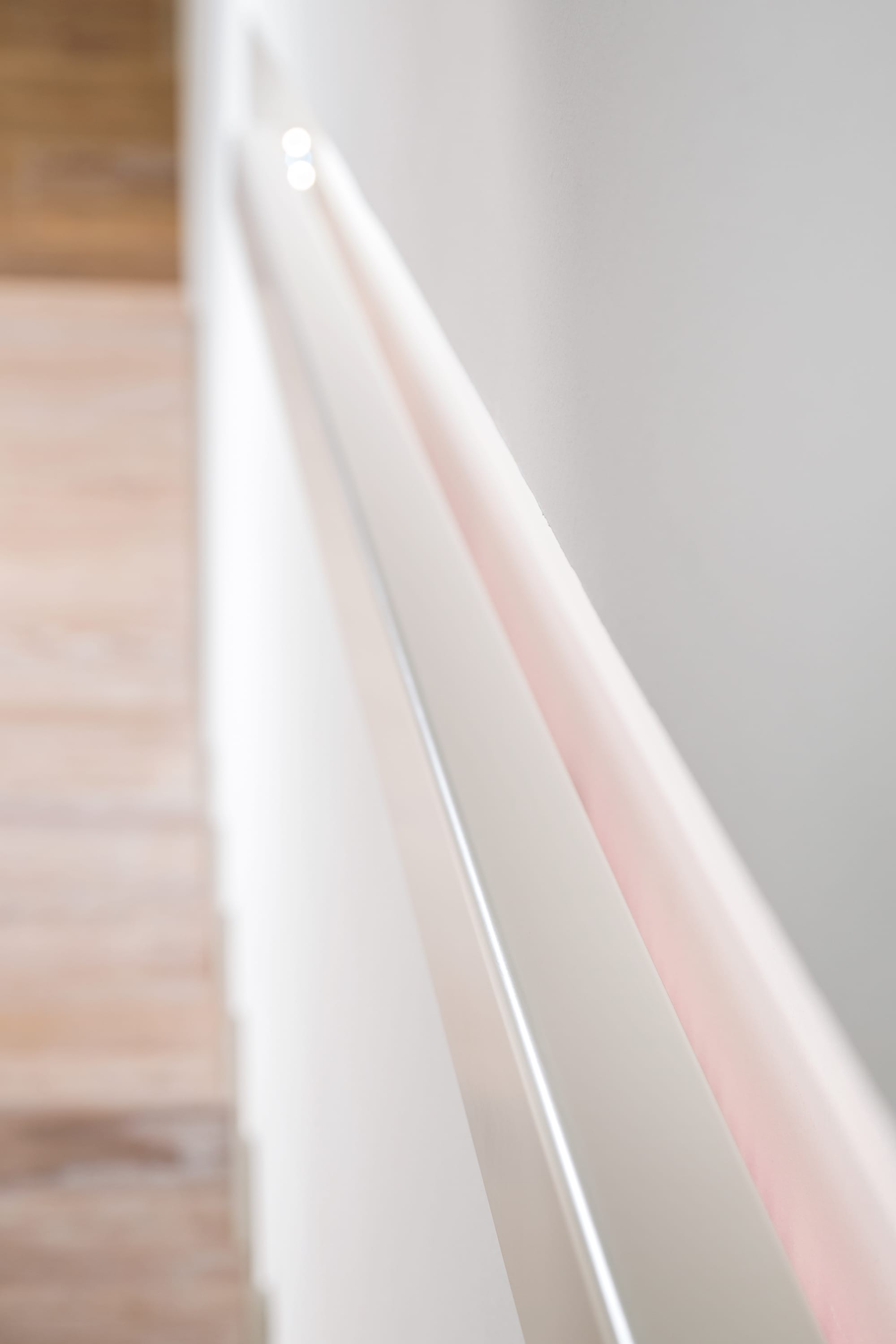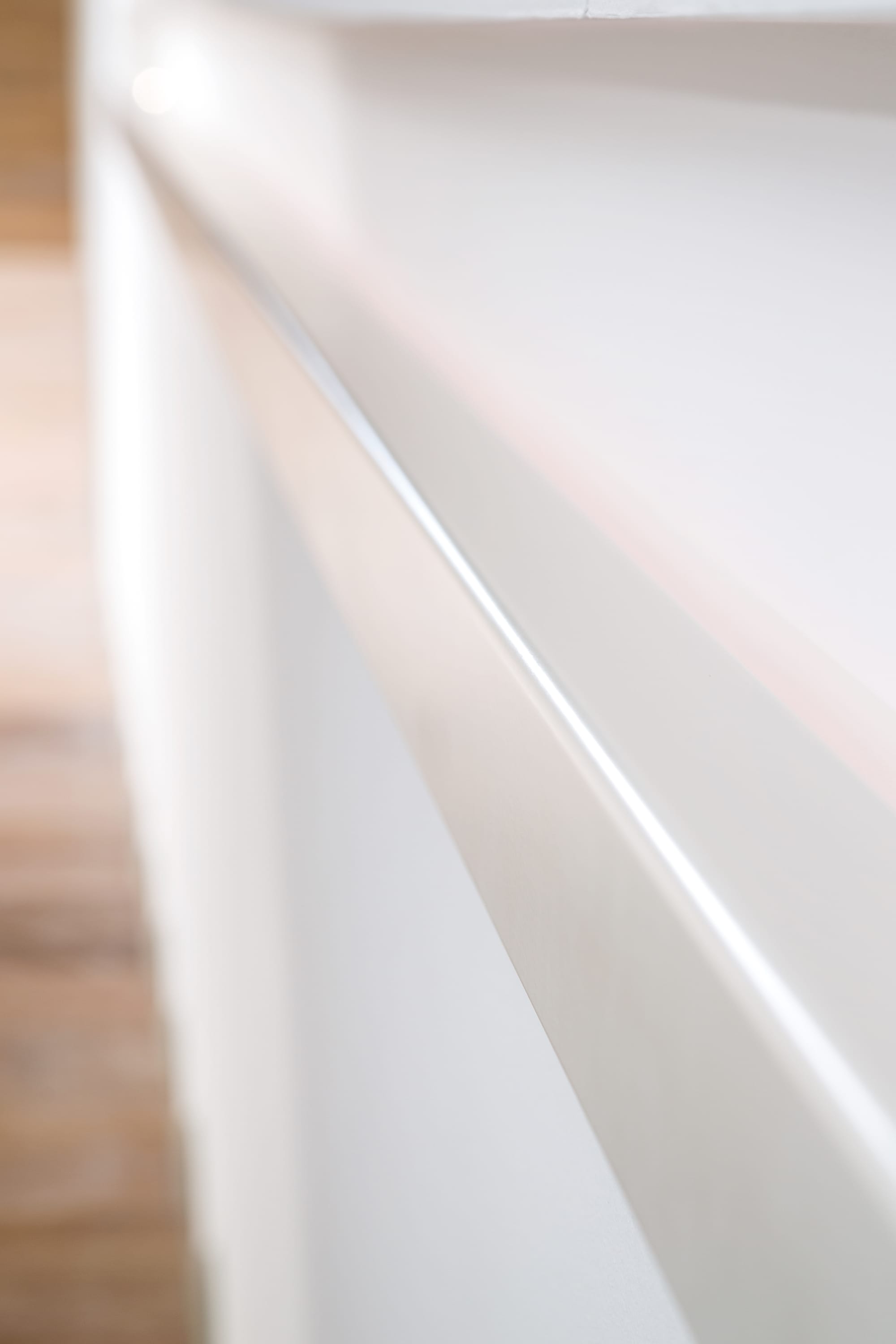 Stufen und Handlauf in der Holzart Akazie mosaik geölt, Wangen verkleidet, eingebautes Regalsystem unter der Treppe
