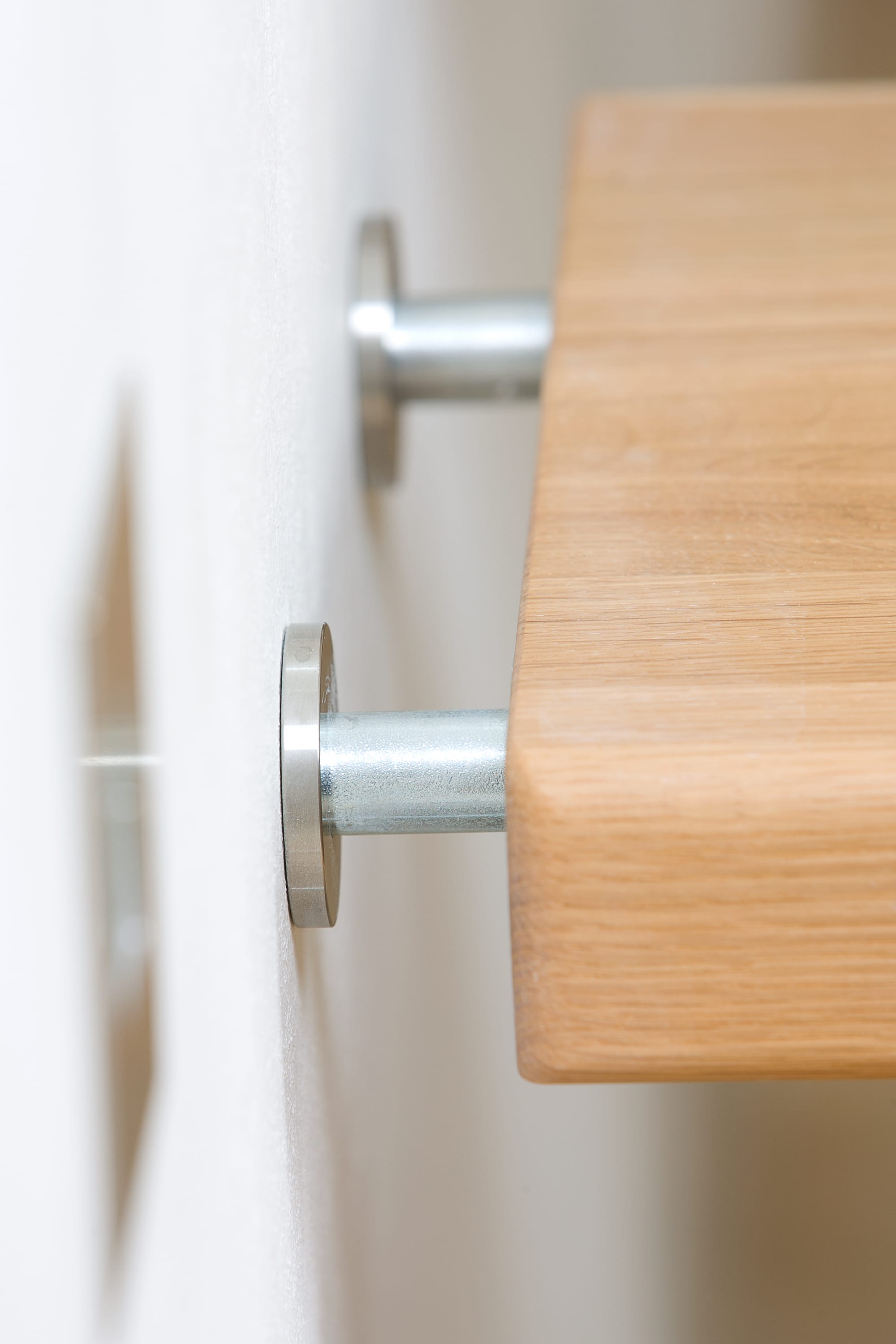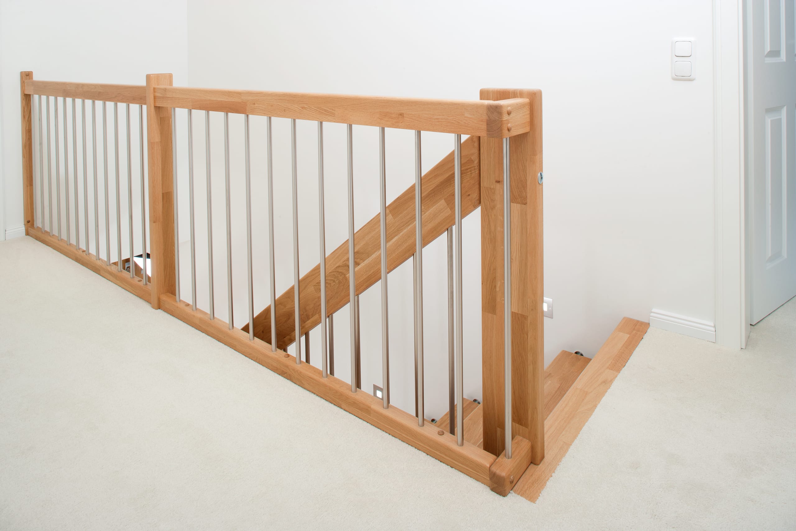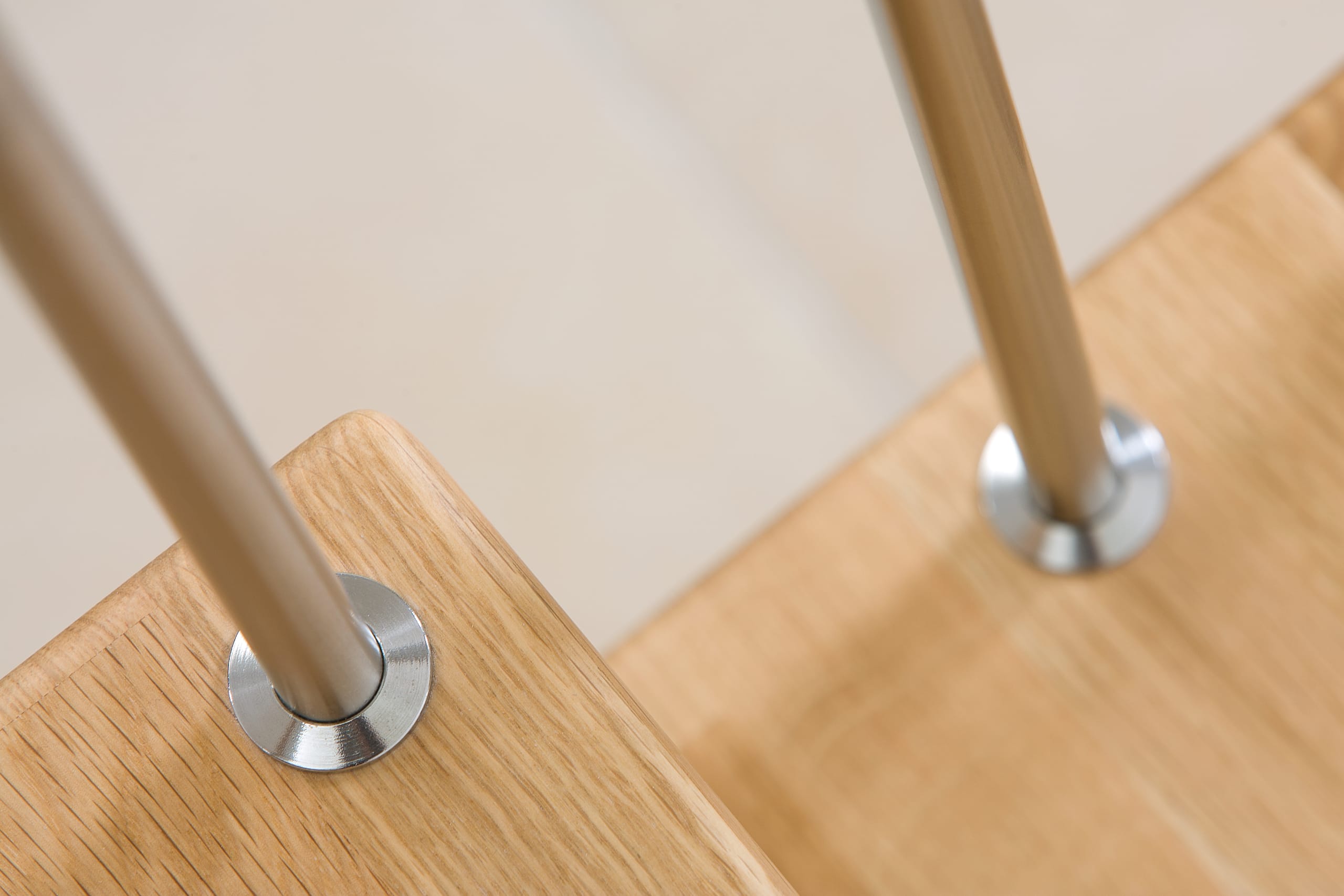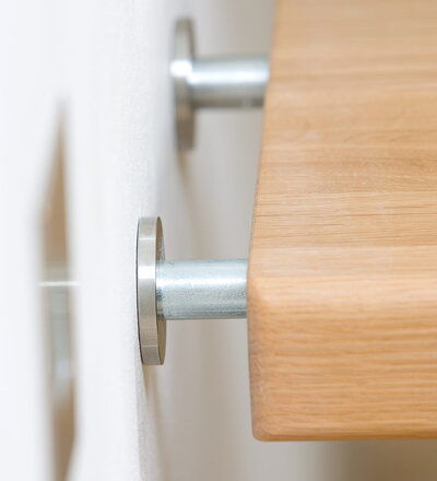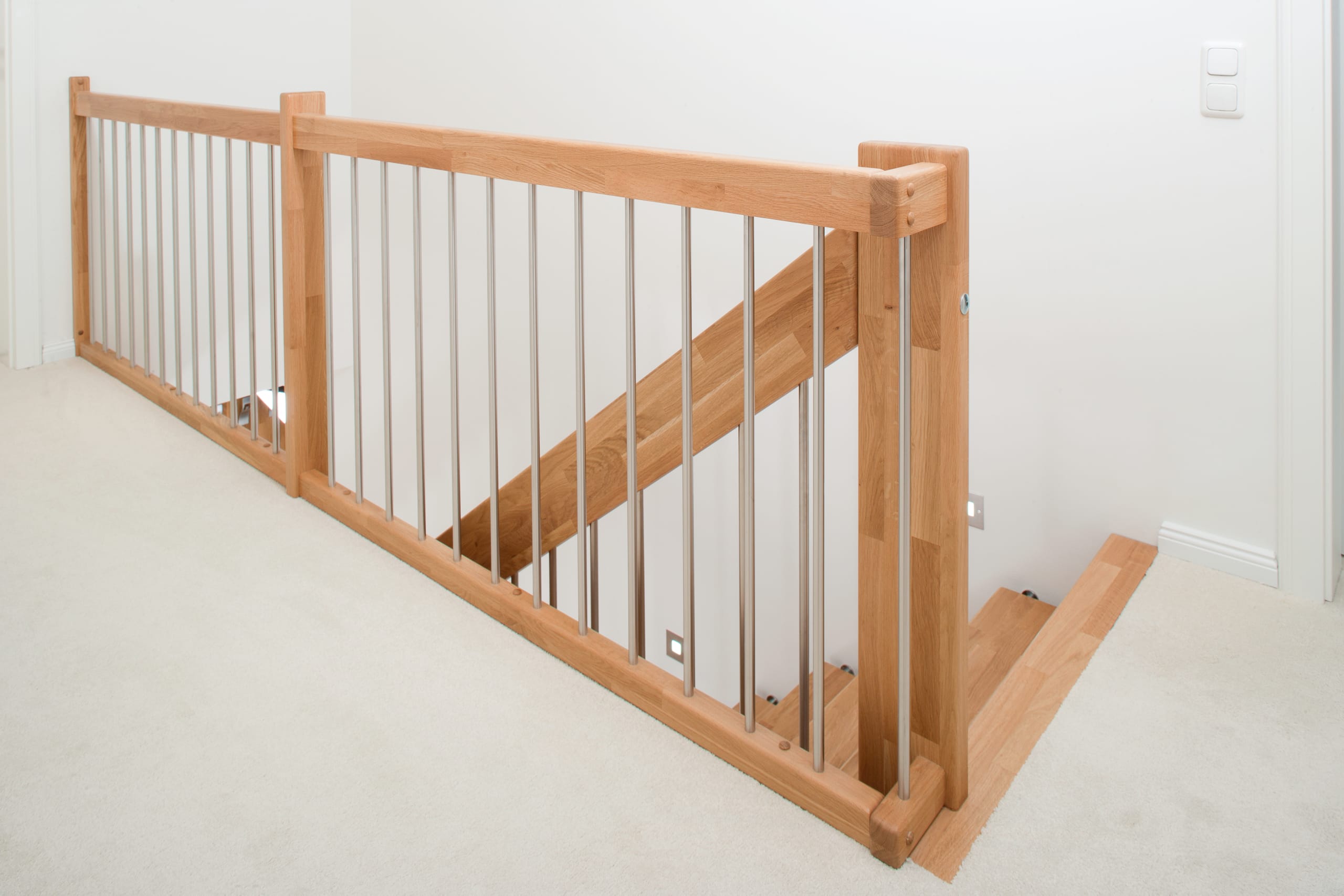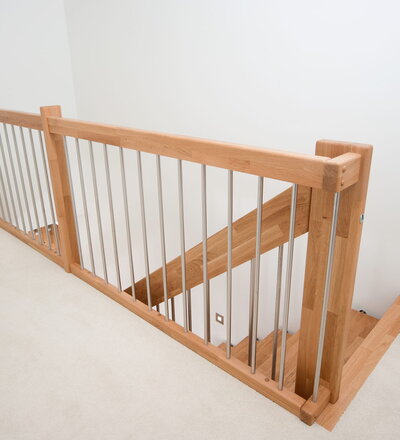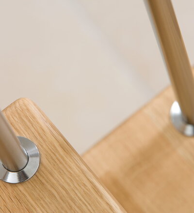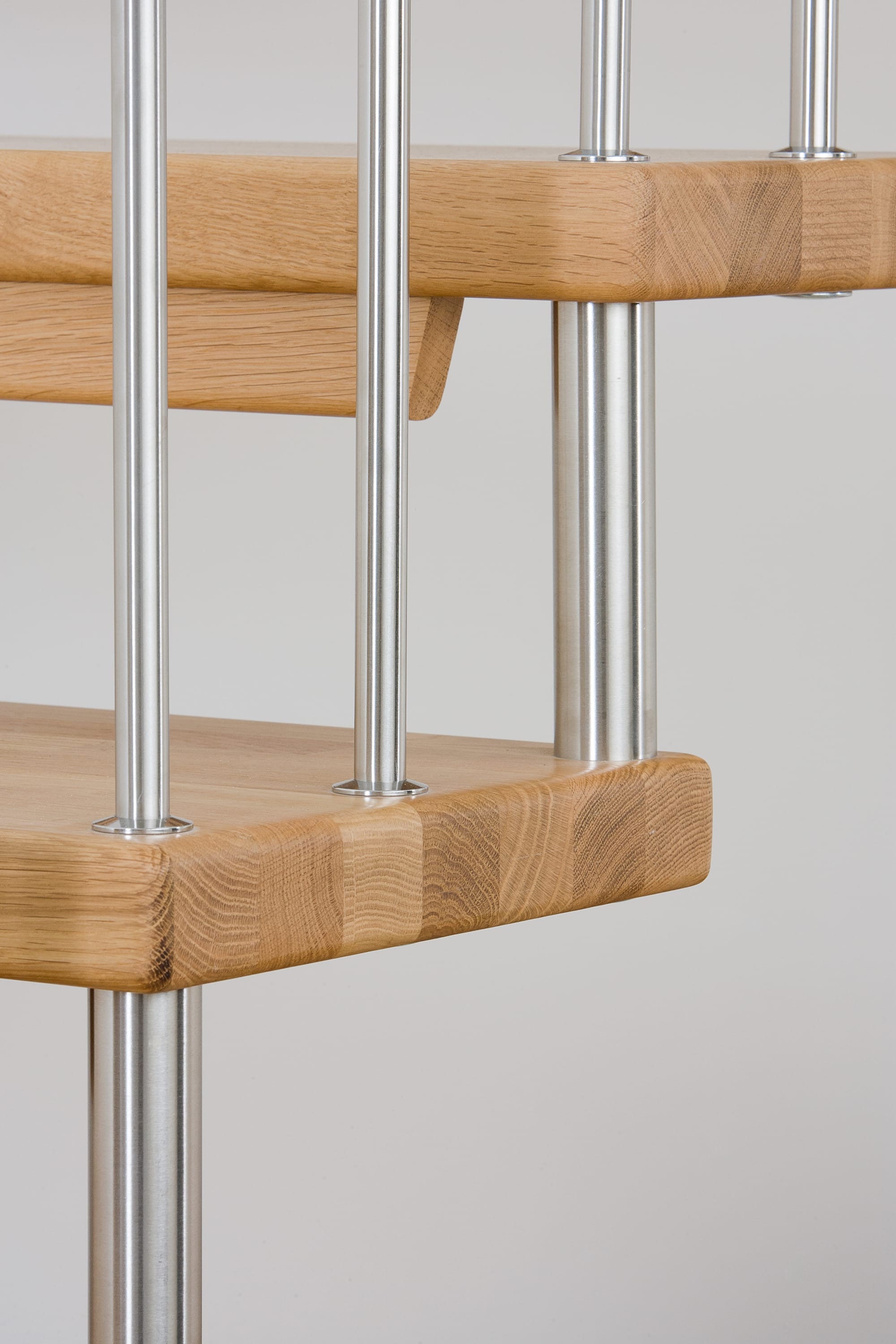 Freitragende Treppe mit Edelstahlstäben; Holzart Eiche mosaik