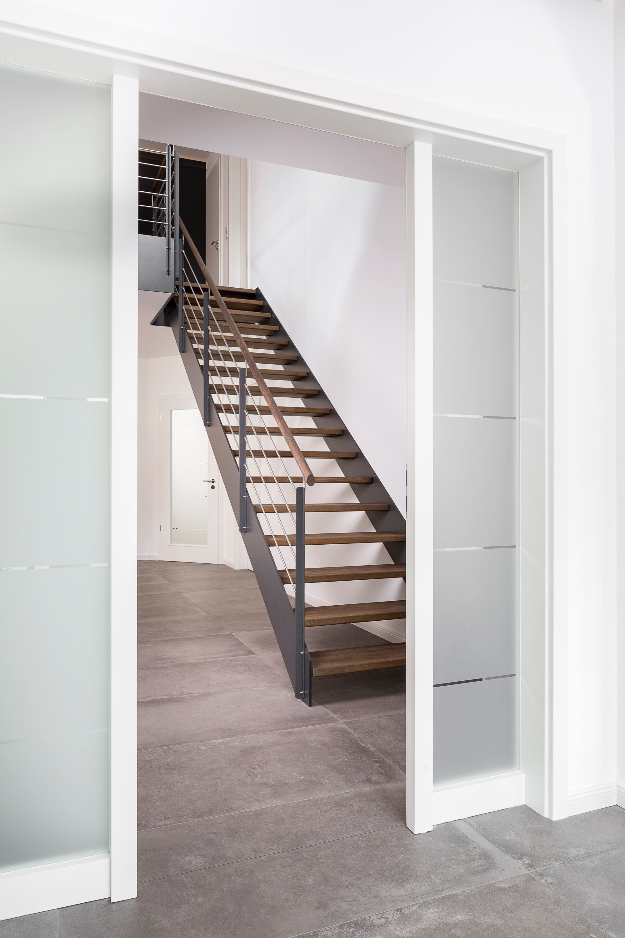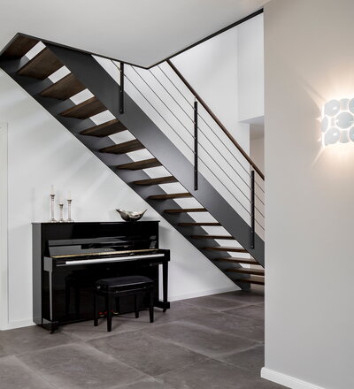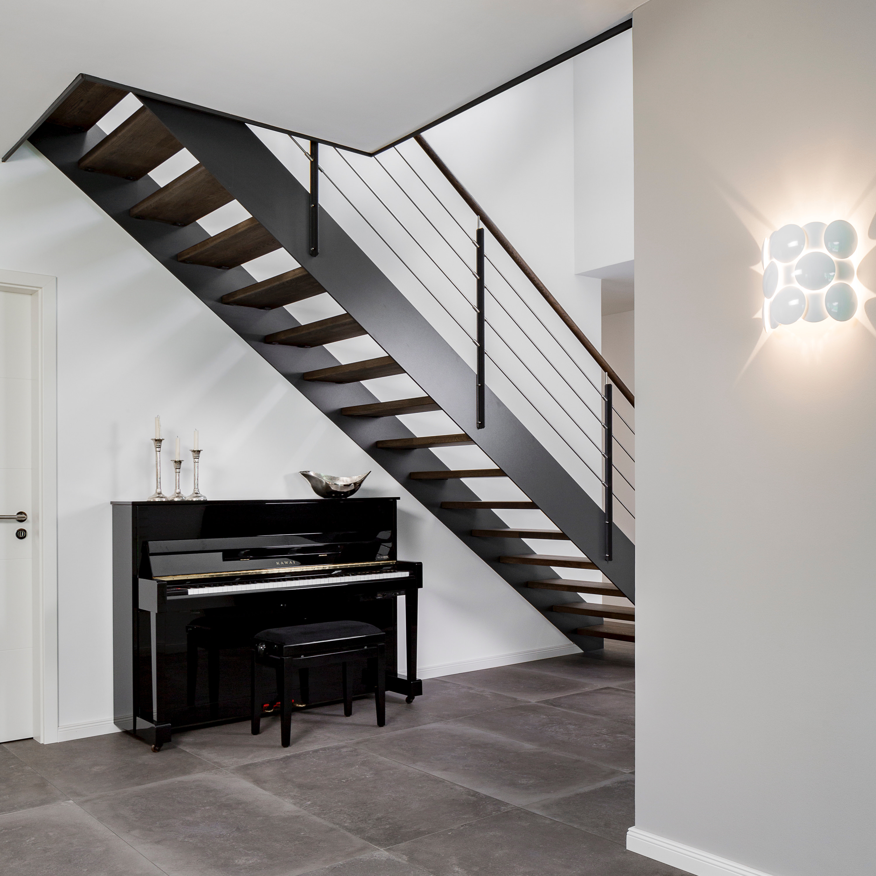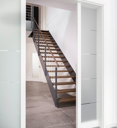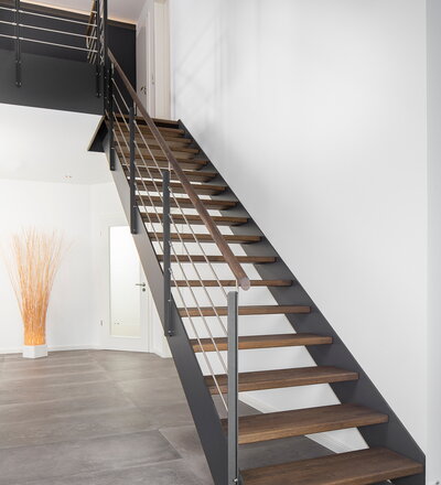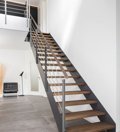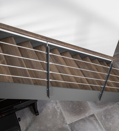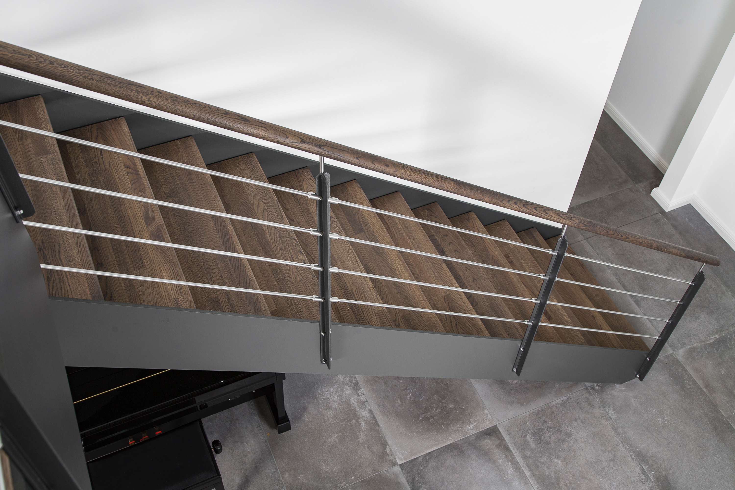 HPL Treppe, Stufen und Handlauf in der Holzart Eiche mosaik geölt mit TBV Echtholz-Öl V-Black