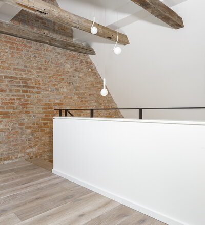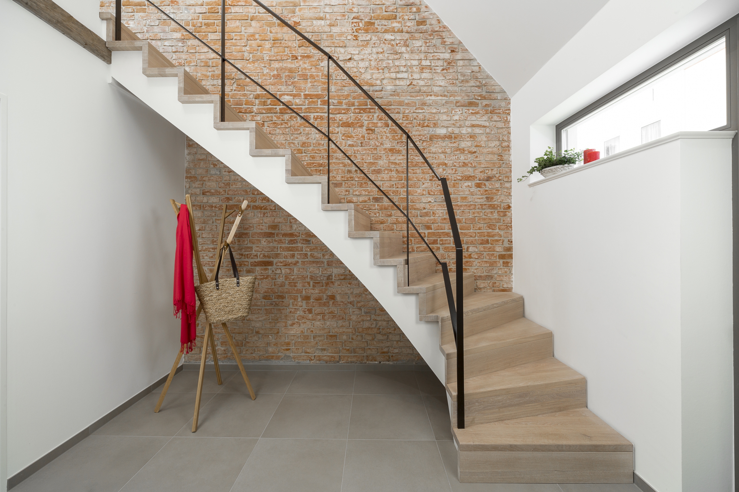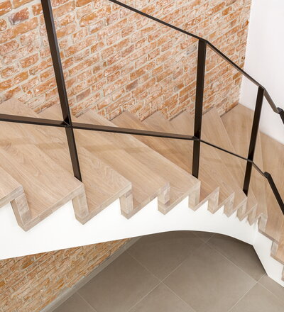Wangentreppe aufgesattelt, Eiche weiß geölt mit TBV Echtholz-Öl Cotton White