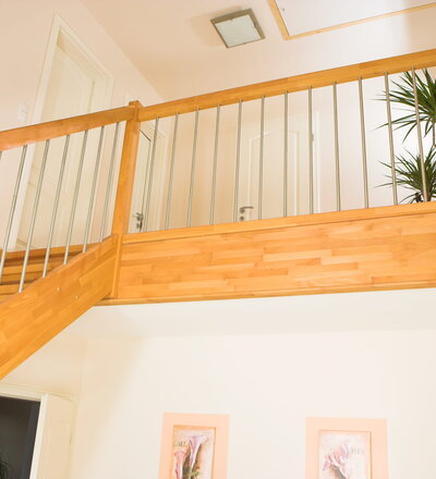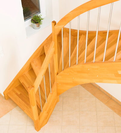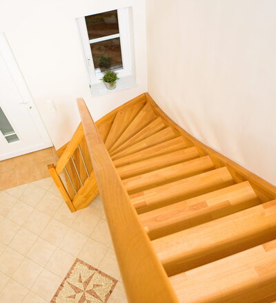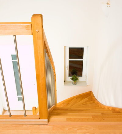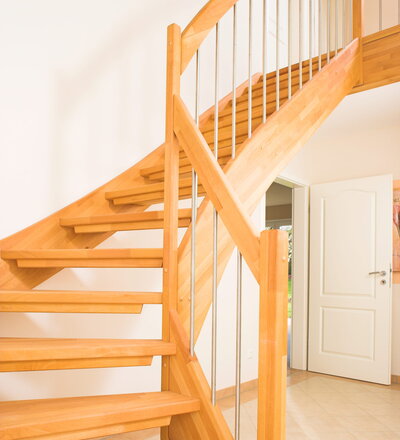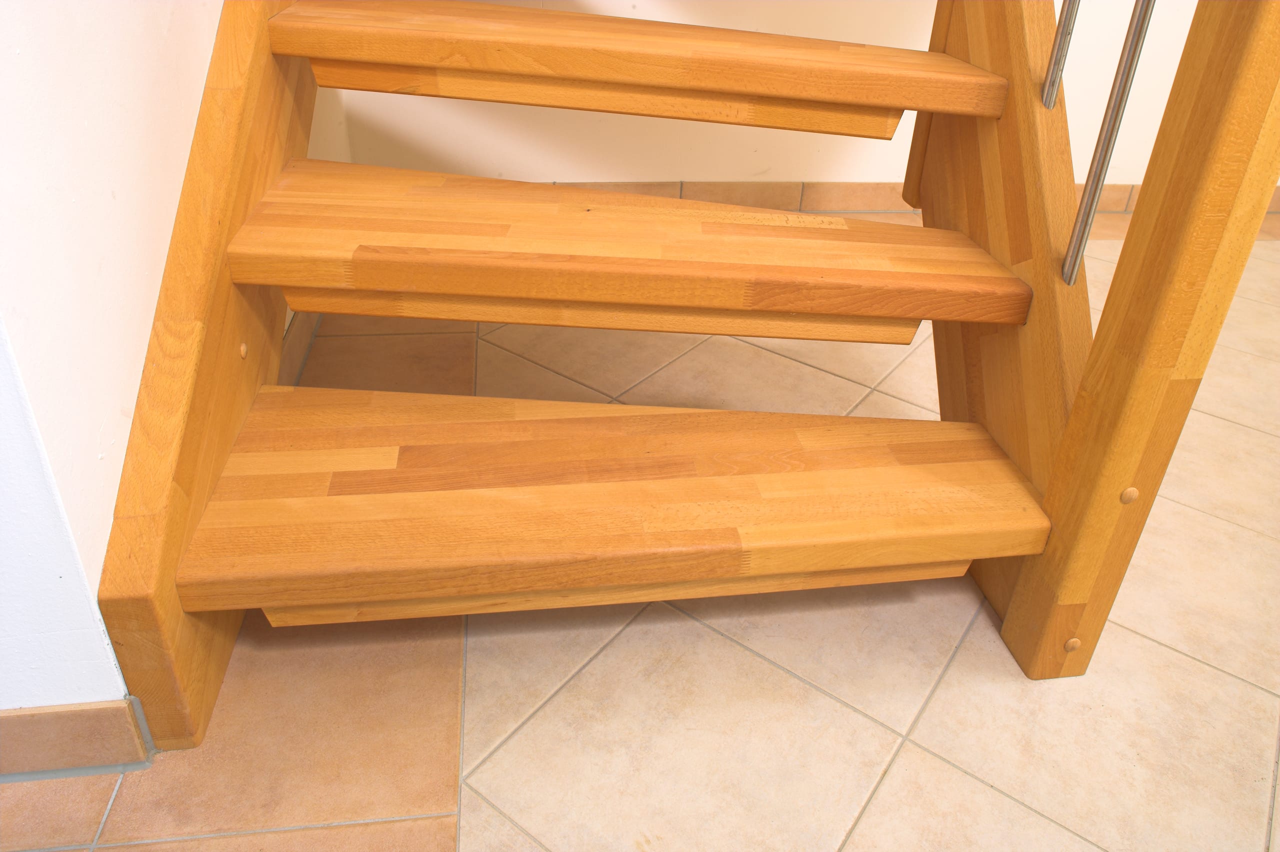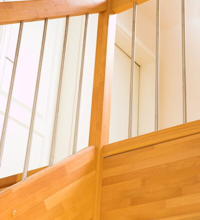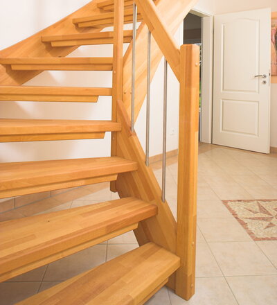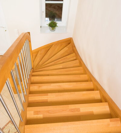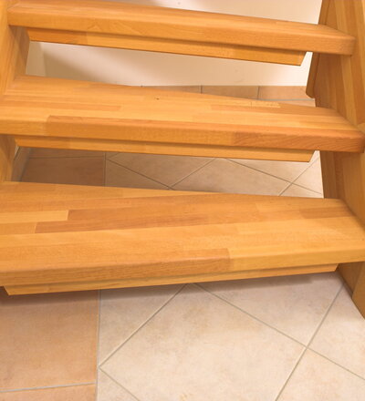 Offene Wangentreppe; Holzart Buche mosaik