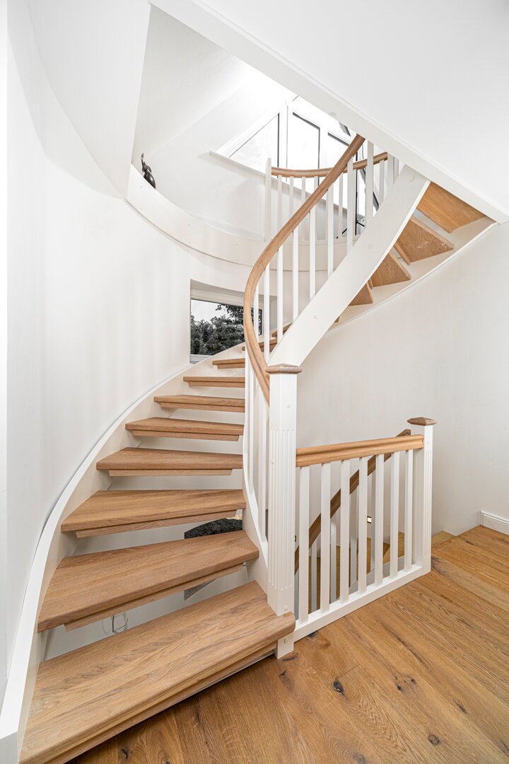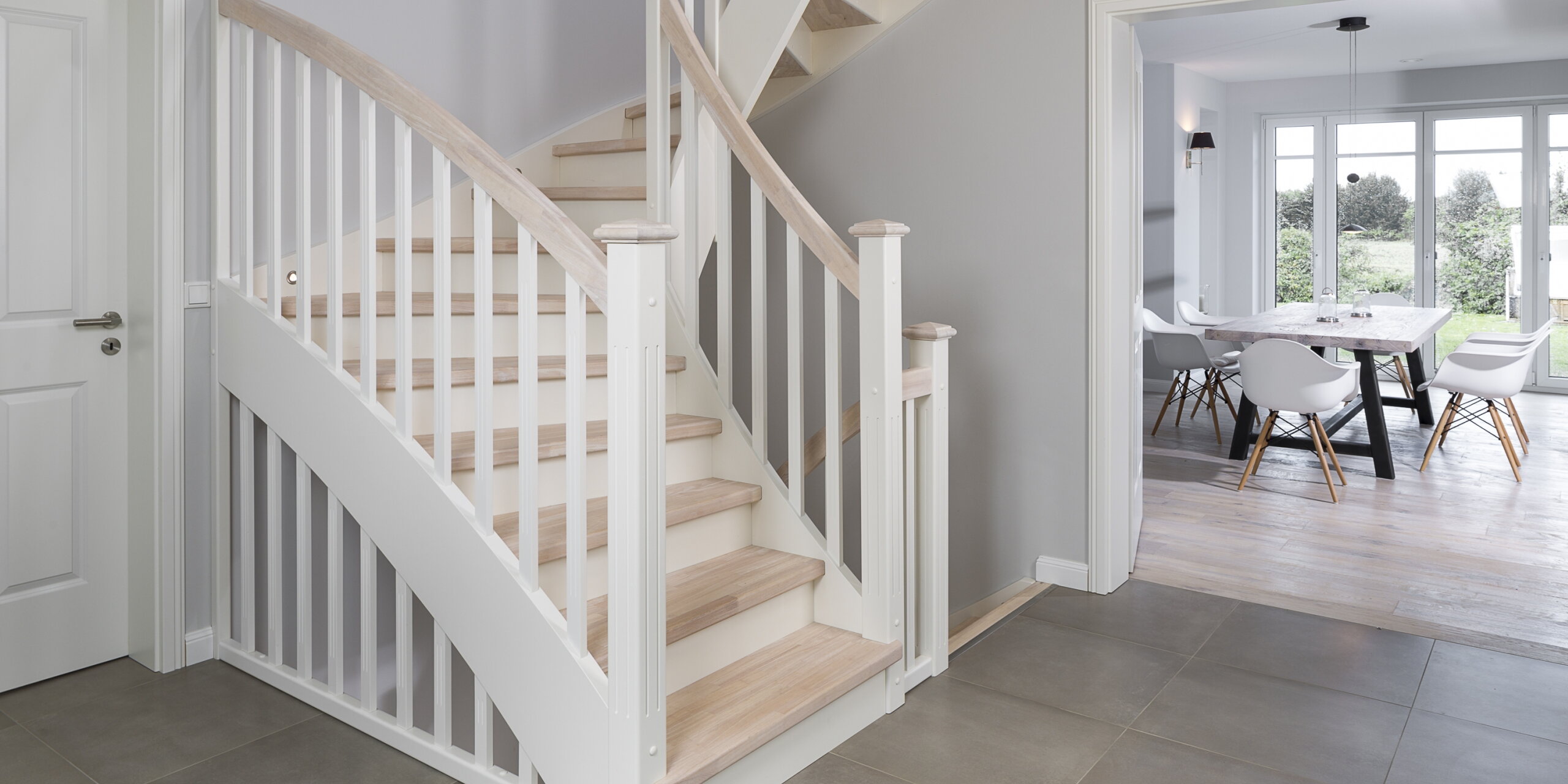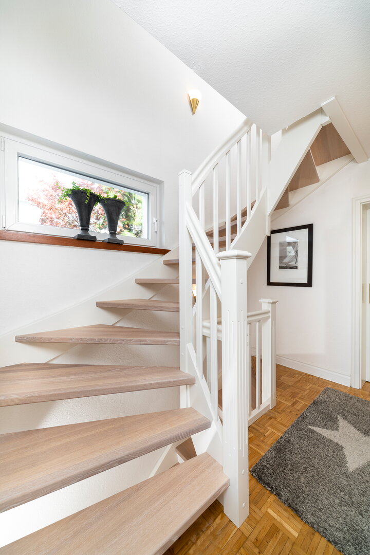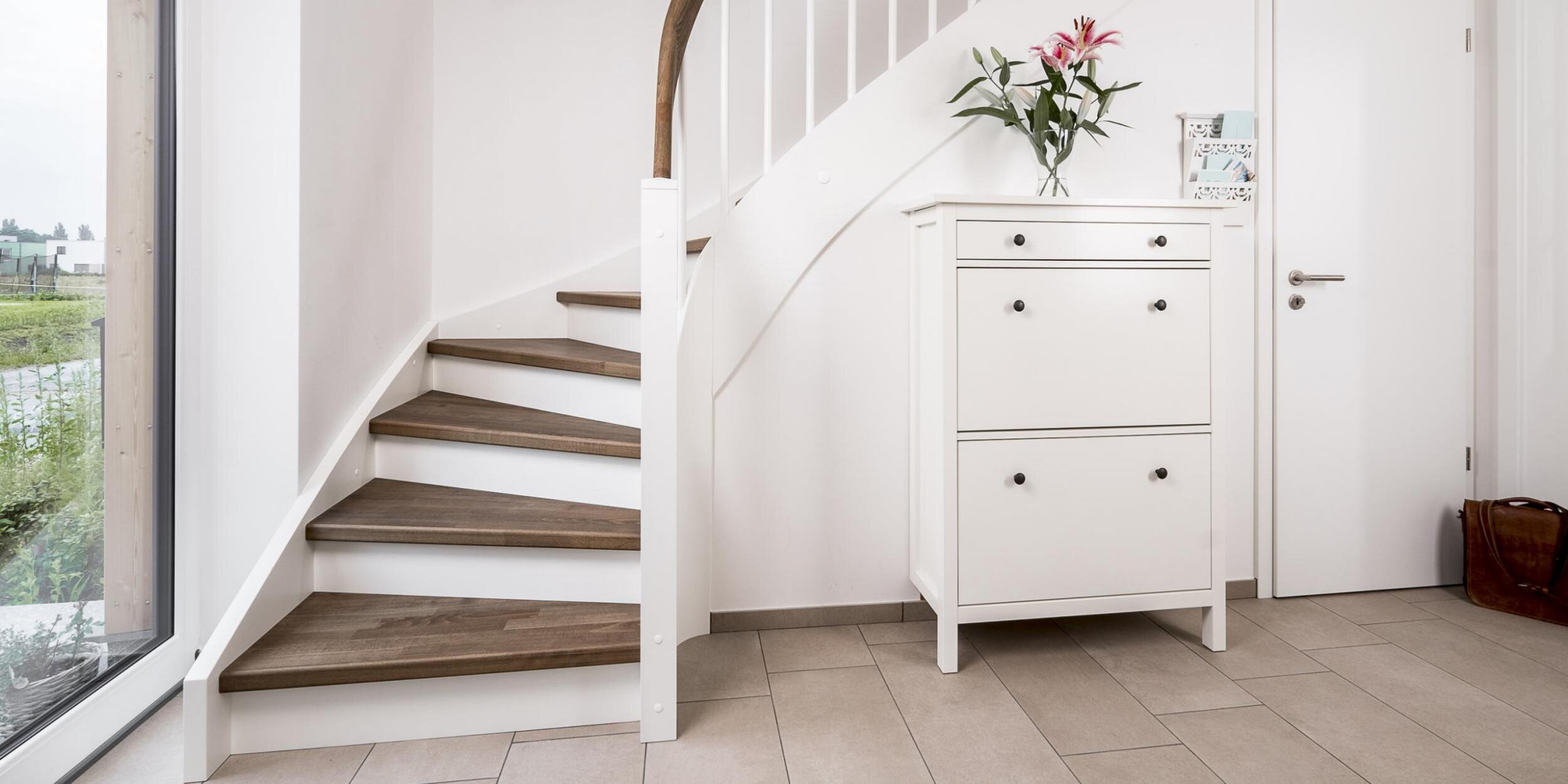 Bei diesem Treppentyp sind unterhalb der Trittstufen senkrecht Setzstufen angebracht, die ihr eine geschlossene, homogene Erscheinung verleihen. Helle Räumen passen ideal zur geschlossenen Wangentreppe. Hier kann sie ihre Ausdrucksstärke am besten ausspielen und wird bei Ihnen zum imposanten Blickfang – egal ob sie gerade hinauf leitet oder eine Wendelung mit Bogen oder Eck vollführt. Durch die Ausgestaltung der schließenden Setzstufen erhält Ihre Treppe Charakter und Individualität.
