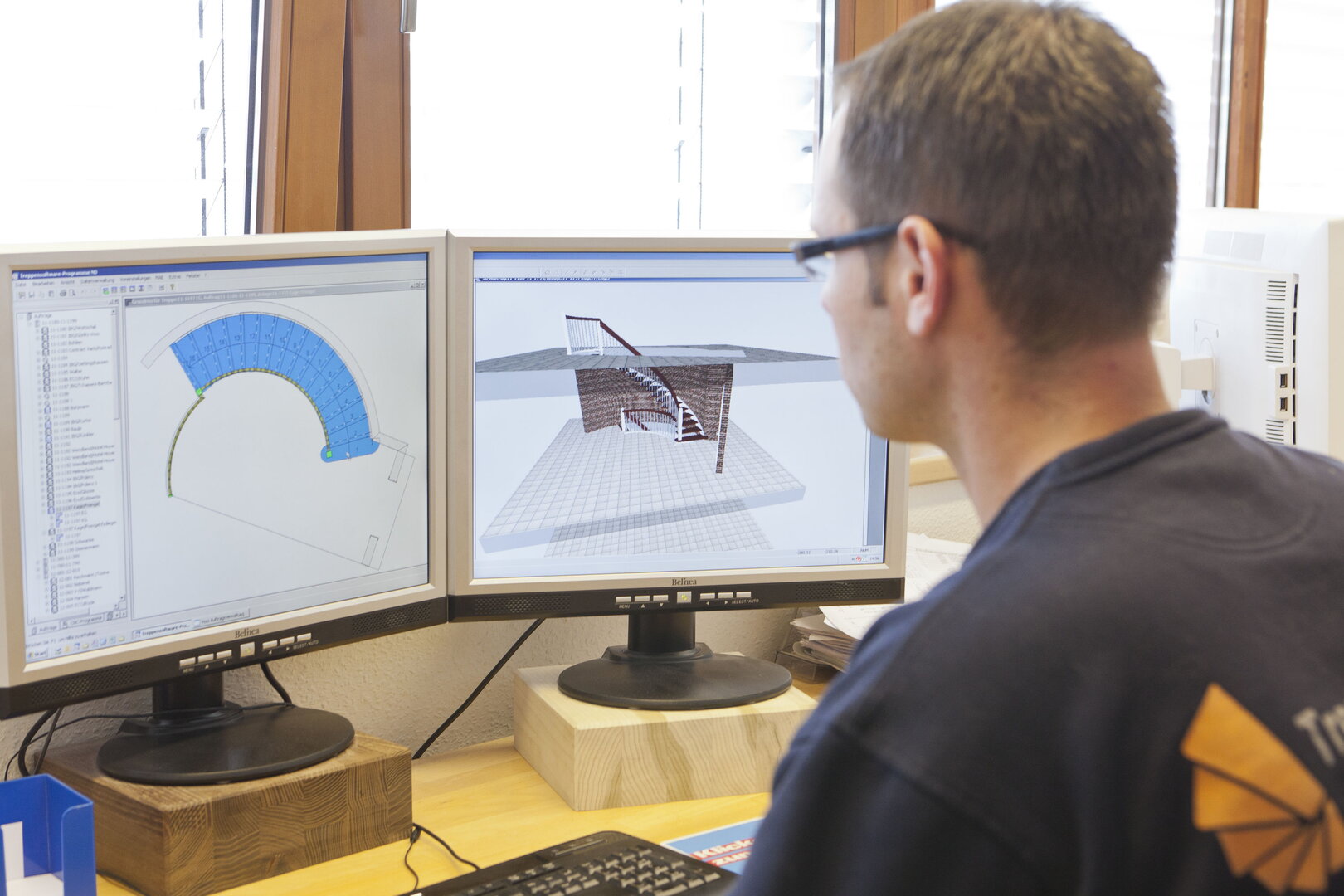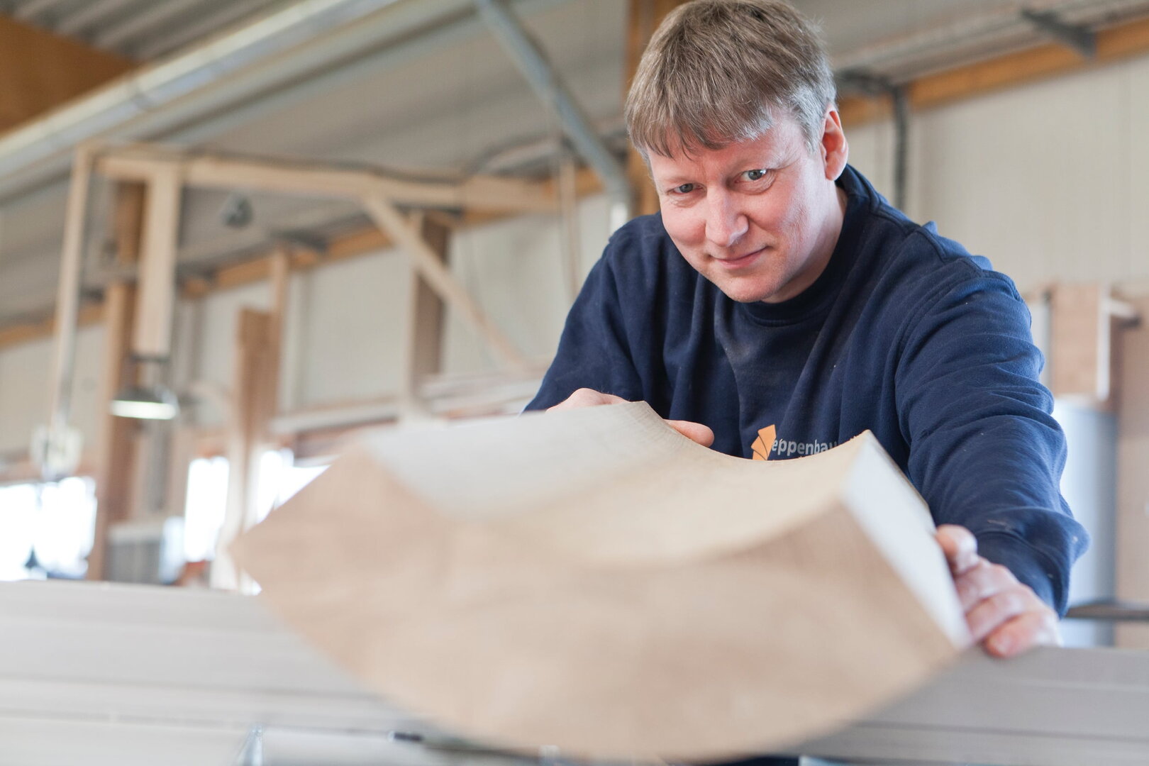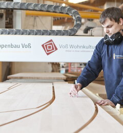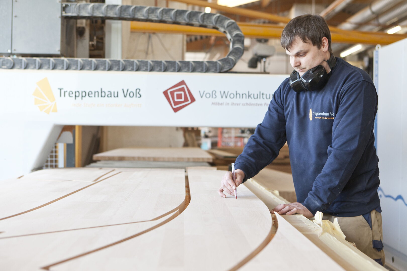 Wir lieben Holz – den Naturstoff, aus dem wir mit Blick für‘s Detail und jahrzehntelanger Erfahrung auch die komplexesten Treppenunikate realisieren. Unsere Kunden erhalten Treppen in Meisterqualität und das zu einem fairen Preis. Dies hat seinen Grund auch darin, dass bei Treppenbau Voß rohstoffsparende Techniken und CNC-gesteuerte Fertigung (Industrie 4.0) zum Einsatz kommen.